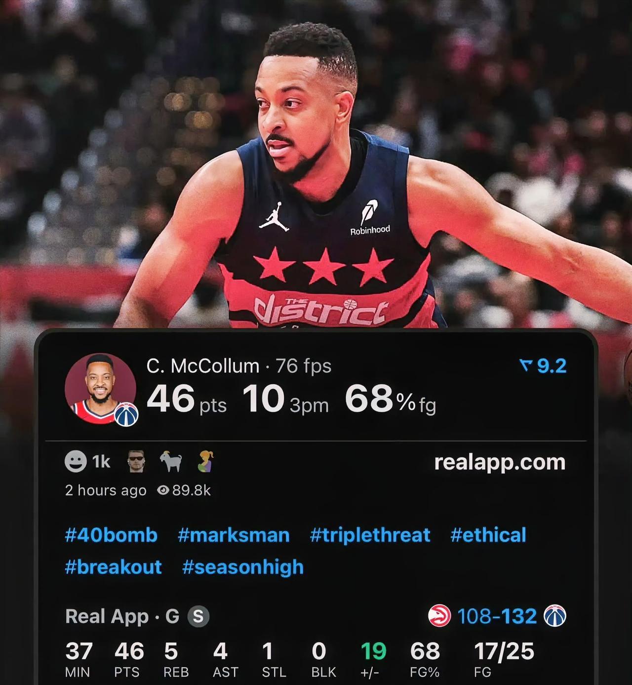 终于终结14连败!奇才赢球了! 开局就轰出45-16的超级攻击波,直接把老鹰打懵!麦科勒姆手感滚烫,狂飙10记三分轰下46分,追平队史单场三分纪录!全队轰下132分的高分,用一场19分大胜送给主场球迷最好的礼物。 虽然球队仍以2胜15负排在联盟垫底,但这场胜利对年轻球员的信心提升太重要了。麦科勒姆赛后表示:“我们从未停止相信自己。”