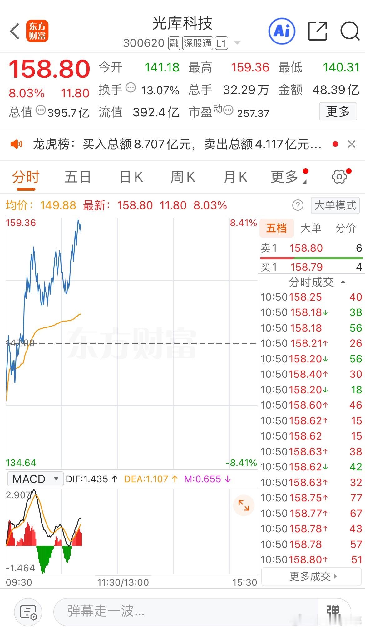$光库科技 sz300620$ 也冲起来了,昨天一大堆看空的,慕慕提示还有上升空间,跟着慕慕操作准没错👏