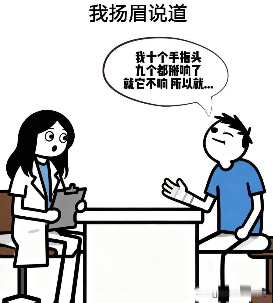 趣味漫画:手指骨折了去挂骨科,医生问:手指怎么断的,我说我有强迫症,医生:你手指断了跟强迫症有什么关系,我:十个手指头九个都掰响,就它不响