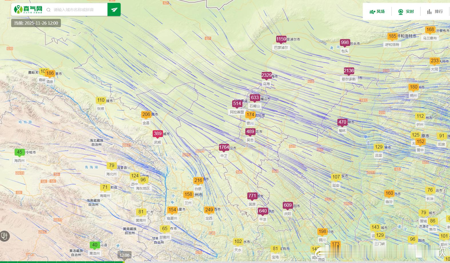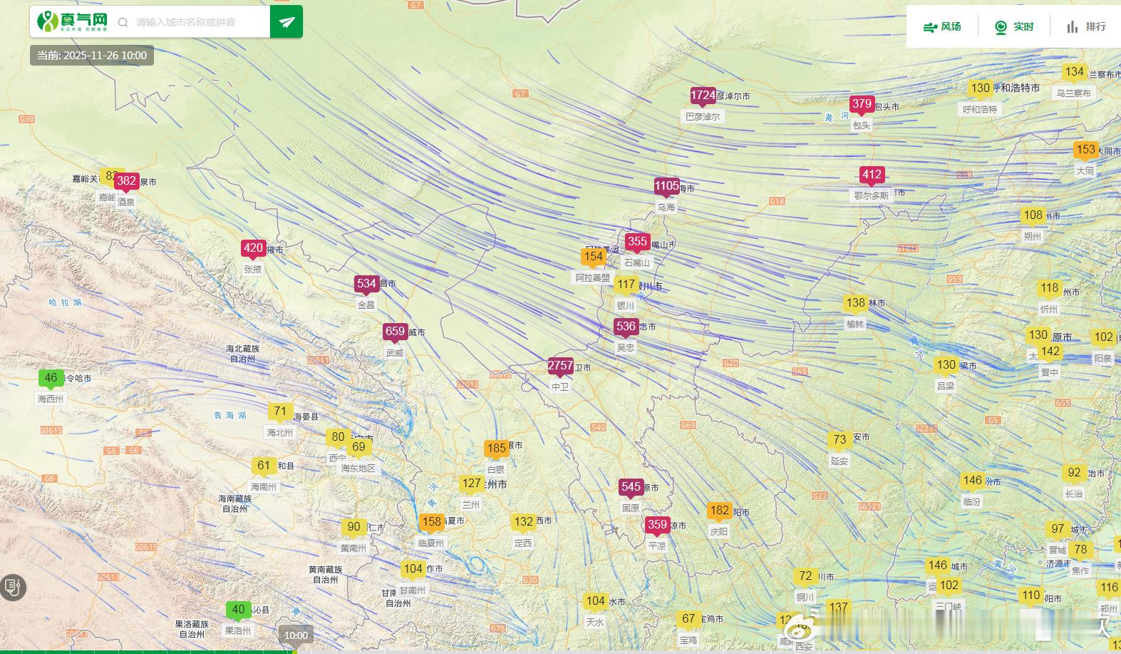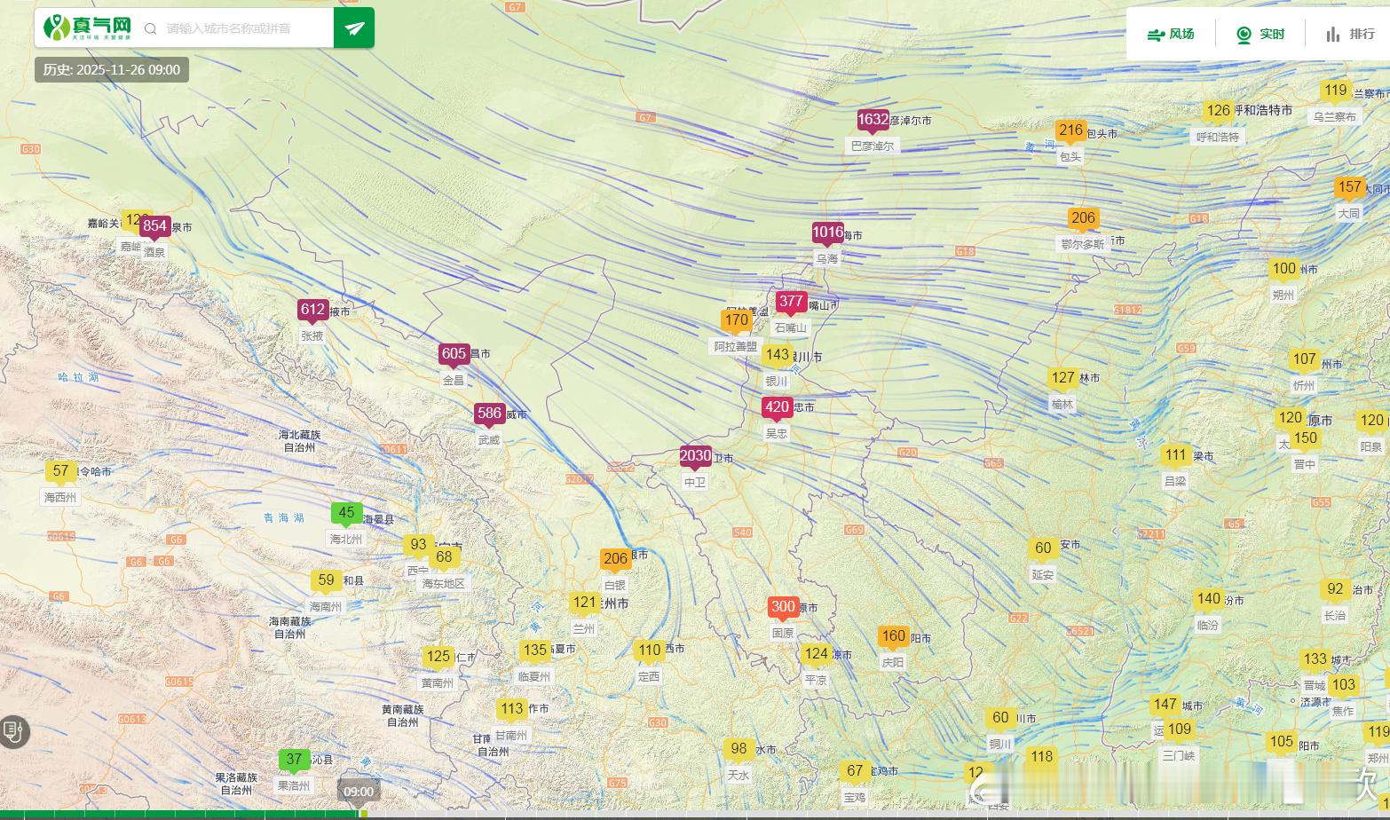【沙尘】今天沙尘在冷空气西北风推动下,总体向东南移动。9时-13时PM10浓度,宁夏中卫、内蒙古乌海、鄂尔多斯,一度超2000微克/立方米。在秋冬季出现如此强的沙尘不多见。内蒙古吉兰泰在中午12时还出现了强沙尘暴。13时沙尘前沿已经抵达呼和浩特,未来会继续向东南推进。