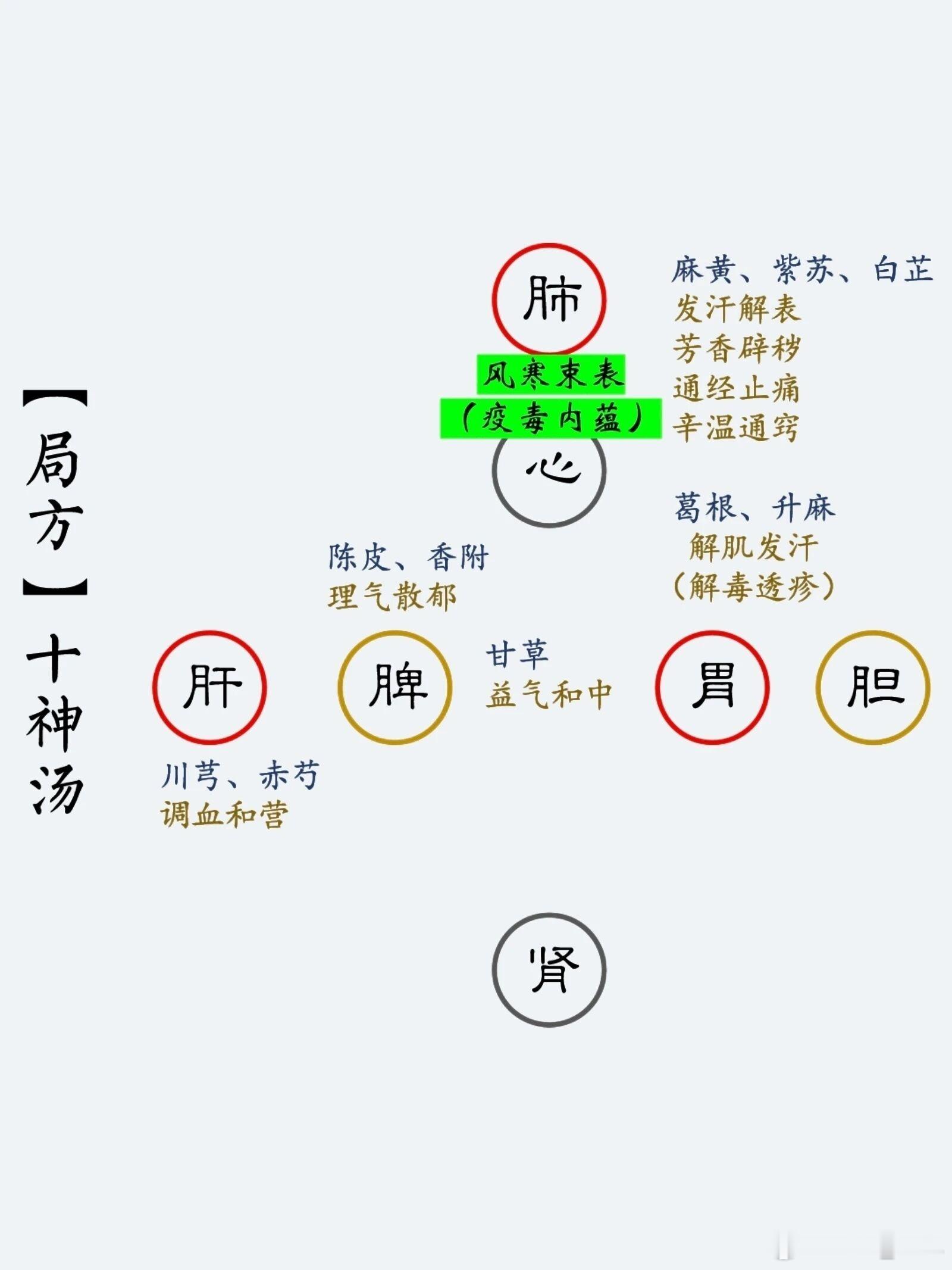 治疗冬季流感,十神汤是个好方子十神汤的出处十神汤出自宋《太平惠民和剂局方》,由葛根、麻黄、赤芍、川芎、升麻、白芷、陈皮、紫苏、香附、炙甘草等组成,主治“时令不正,瘟疫妄行,人多疾病。此方不问阴阳两感,或风寒湿痹,皆可服之”。本方药性平和,“虽产妇、婴儿、老人皆可服耳”。继续追源,《太平惠民和剂局方》记载的十神汤却是出自于唐·孙思邈的《千金翼方》,功能“治伤寒,时令不正,瘟疫妄行,感冒发热,或欲出疹,不问阴阳,两感风寒,并皆治之。”具体的处方组成:干葛、麻黄(去节)、升麻、白芷、赤芍药、川芎、香附,紫苏、陈皮、甘草(炙)、各一钱半。上作一服,水二钟,生姜五片,煎至一钟,不拘时服。备注:发热头疼,加连须葱白二根;中满气实,加枳壳煎。十神汤的用法处方常用剂量:葛根20—30克,麻黄6—12克,升麻9—12克,赤芍9克,川芎9克,白芷9克,香附12克,紫苏12克,陈皮15克,生甘草9克,大枣5枚,生姜15克,葱白含葱须一根,切段同煎。加减:针对于不同季节,春季加荆芥6克,防风9克;夏季加藿香9克,大腹皮6克;秋季加黄芩6克,冬季加金银花15克。用法:每日1--2剂,水煎服,注意煎药时间20—30分钟,不要久煎。不拘时服。儿童可以加点白糖。十神汤的应用指征1、四时流行性感冒引起的发热恶寒、鼻涕伤风、身痛头痛、身体拘紧、高烧不退;2、舌淡白微胖大或者齿痕,苔薄白或略厚,脉沉紧或浮,沉取当应有力;3、初次服用要配合辅助发汗法:喝热粥,盖被取汗;4、烧退后要再进一剂,防止余邪未清,炉火复燃。案例 病案:王某,男,沈阳人,42岁,2019年12月6日初诊。患者于4日前打篮球时汗出脱衣,晚上回家冲澡后,第二天出现恶寒发热,体温39.1℃,无汗,时而寒战,头痛体痛,四肢酸楚,鼻塞流清涕。自行去家附近的社区医院就诊,诊为“上感”,给予输液(药名不详),口服抗感解毒冲剂,经治疗2日,体温波动在38℃左右,其余症状无明显减轻,遂来求中医诊治。刻下:发热,体温38.4℃,恶寒无汗,头沉体痛,肩颈部僵痛,鼻流清涕,嗓子微疼,不咳,纳差,二便调,口微渴而不思饮,舌质淡红略胖大,苔白滑,两寸关脉浮紧,沉取有力。考虑风寒束表,治当疏风散寒、解表和中。予十神汤加味:葛根40g,麻黄12g,升麻12g,紫苏15g,陈皮15g,白芷9g,赤芍9g,川芎9g,生甘草6g,香附15g,金银花15g,牛蒡子6g,生姜3片,葱白2根带须切段。日1剂,水煎分4次温服,药后喝热白米粥助汗,忌生冷油腻。1剂后汗出表解而热退,2剂后诸症悉除。 淄博·广成中医