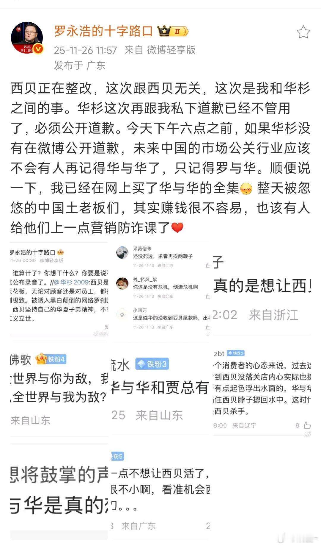 罗永浩 录音罗永浩 华杉搬好小板凳吃瓜罗永浩又和华与华杠上了西贝事件刚刚从危机中平静下来这下又要被推到风口浪尖了