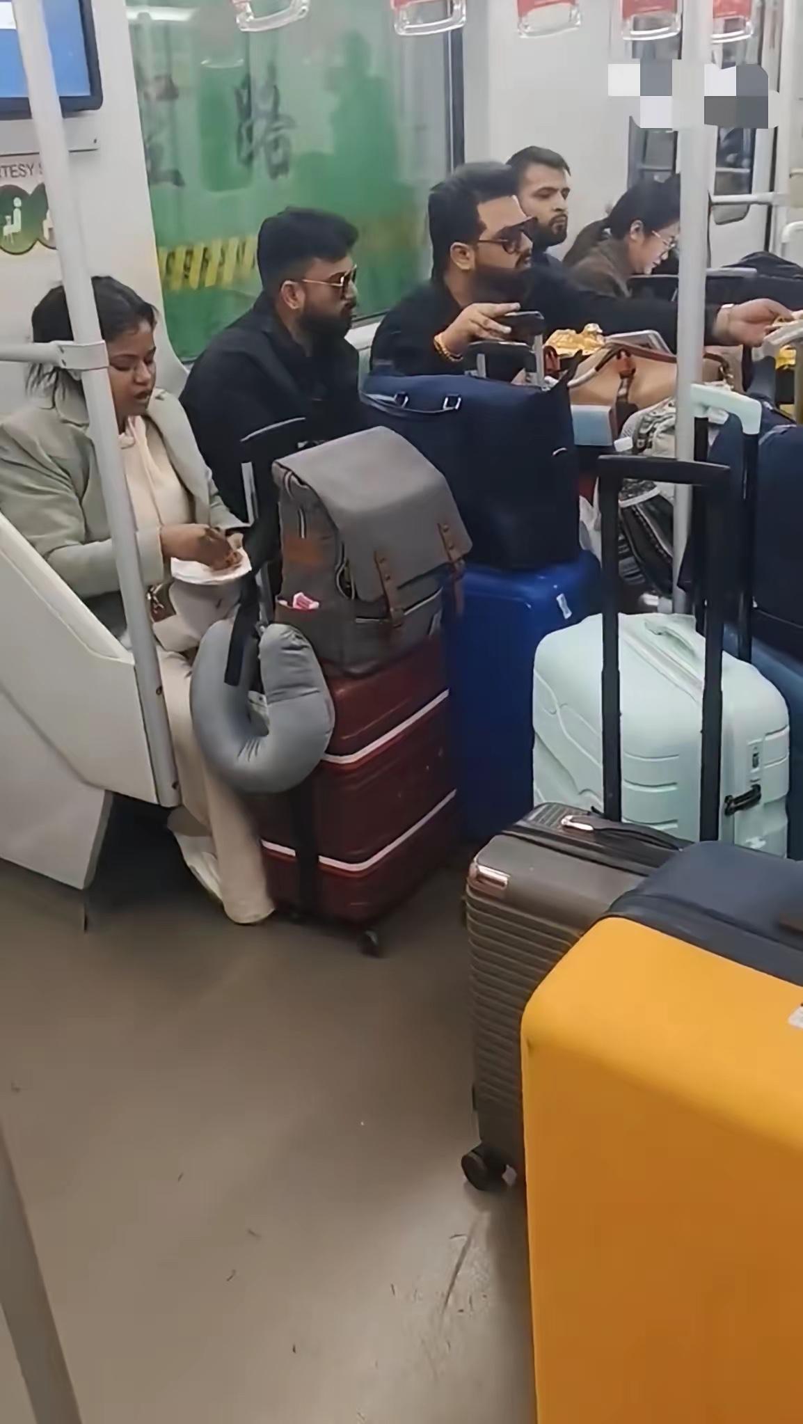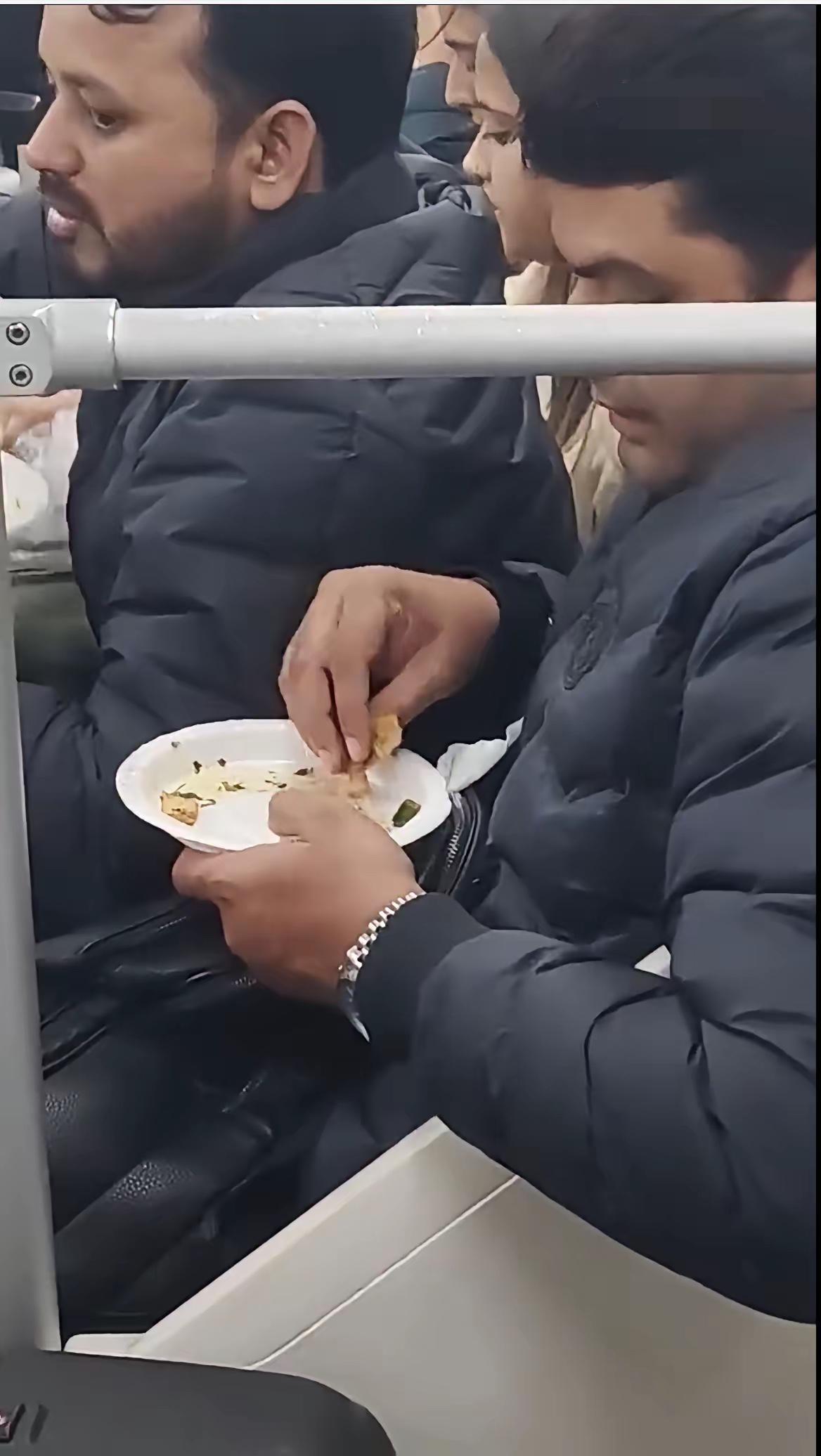 上海地铁这幕太颠覆认知了! 两排外籍人士捧着碟子用手抓咖喱饭,浓郁的味道飘满整个车厢,连带着皮箱的样子,一看就是来旅行或出差的。 有人说上海包容就该忍,可包容不是无底线纵容啊!地铁是公共空间,不是自家餐桌,不管来自哪个国家,遵守公共规则都是基本礼貌吧?总不能用“文化差异”当挡箭牌,让全车人跟着吸咖喱味、看徒手吃饭的画面。 更让人疑惑的是,地铁里根本没有洗手池,吃完手抓饭怎么清洁?总不能真像网友调侃的那样“用嘴嗦嗦”吧?公共场合的体面,从来不是靠身份或国籍撑起来的,而是对他人的尊重。 包容不代表放弃底线,尊重文化也不意味着牺牲公共利益。你觉得这种行为该被理解吗?