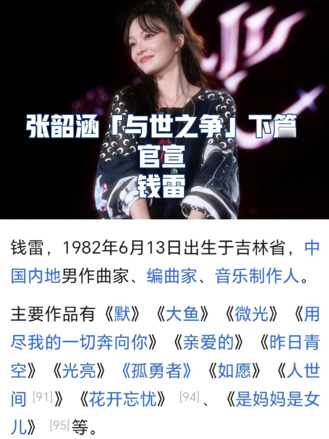 张韶涵凑齐了华语乐坛俩神 华语乐坛顶配牌局已就位!张韶涵搭档创作大神钱雷、才子词人吴青峰,新专辑《与世之争》下篇堪称听觉暴击。钱雷旋律自带叙事感,吴青峰歌词戳中深层情绪,搭配张韶涵穿透力嗓音,从《蜂拥而至》到《演算的浪漫》,首首都是实力碰撞的火花。11.28全球上线,耳朵已提前狂欢!