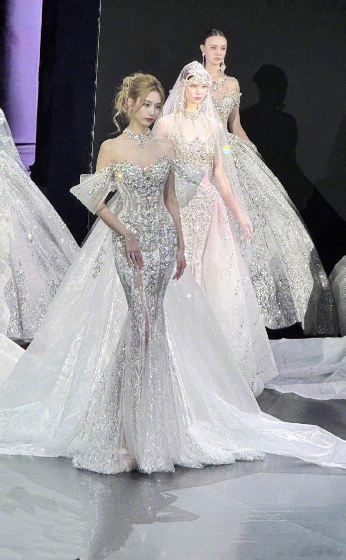 徐艺洋这套造型比婚纱好看 徐艺洋这套真是美得没边了……鱼尾礼服完美展现自己的身材优势金发白衣礼服的搭配仙气十足