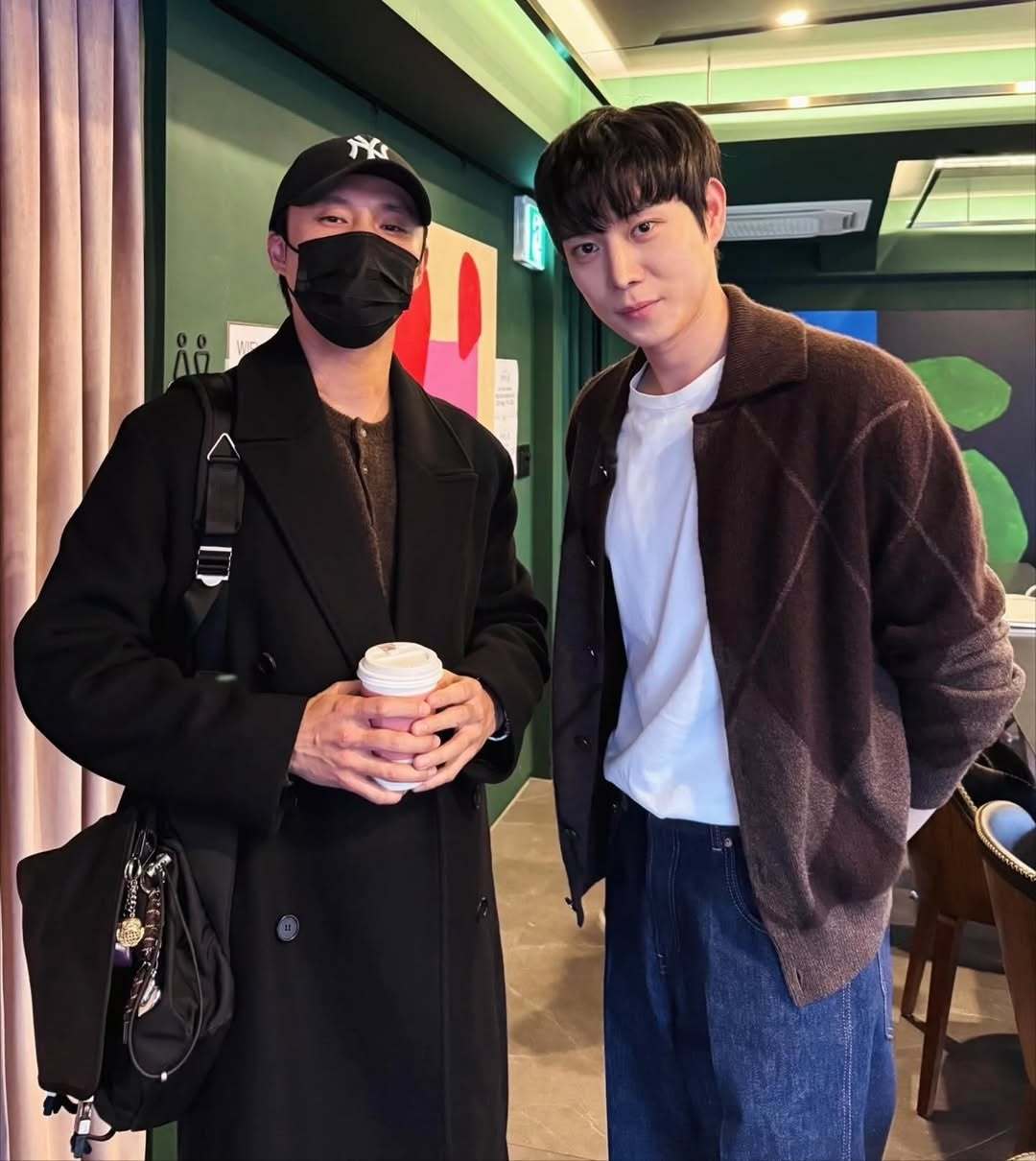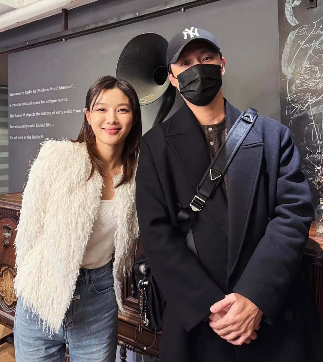 亲爱的x 金裕贞、金永大分别与采访记者合影。