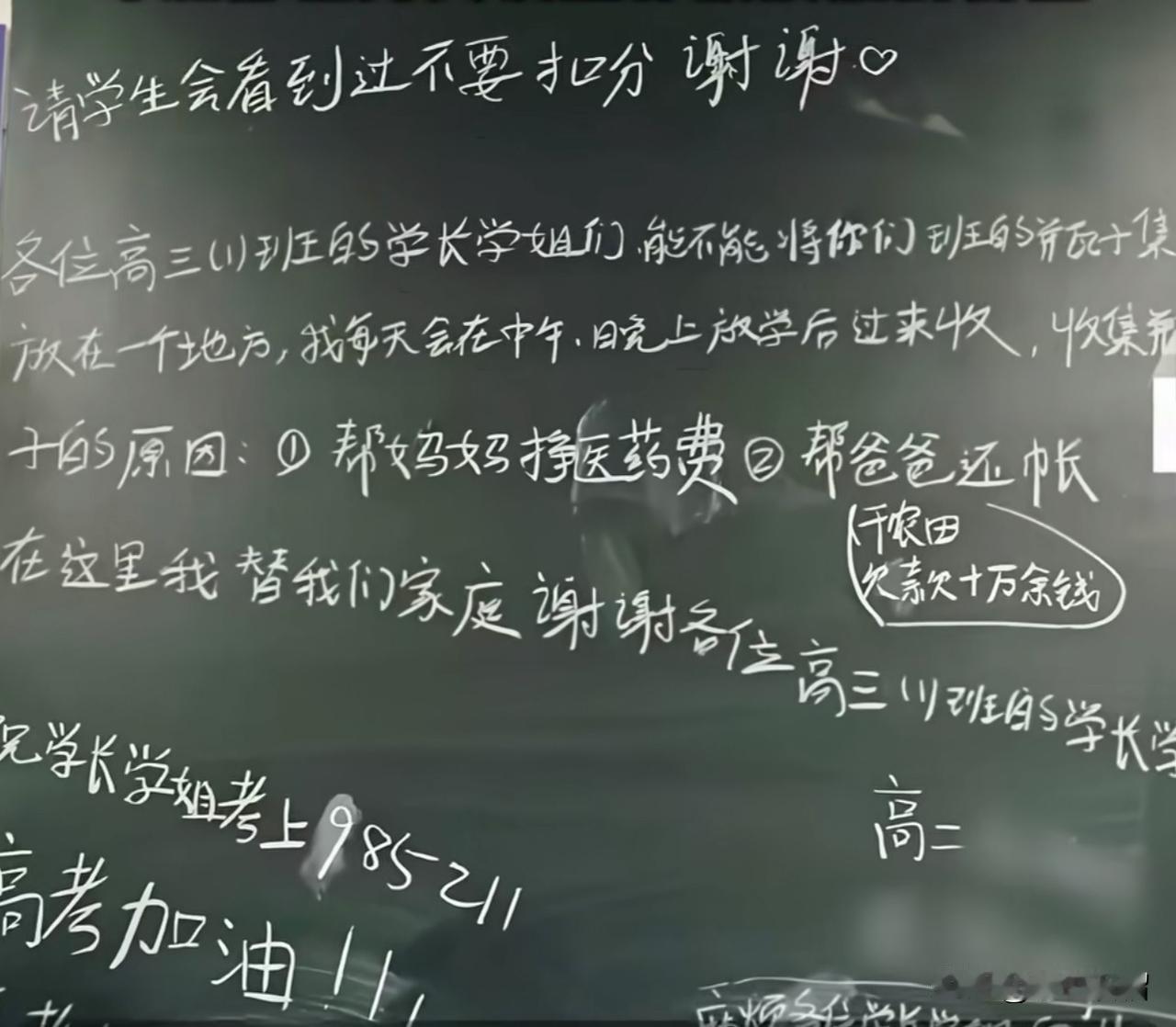 泪目了! 近日,安徽淮南,一名高中生在黑板上留言,恳请学长学姐留下