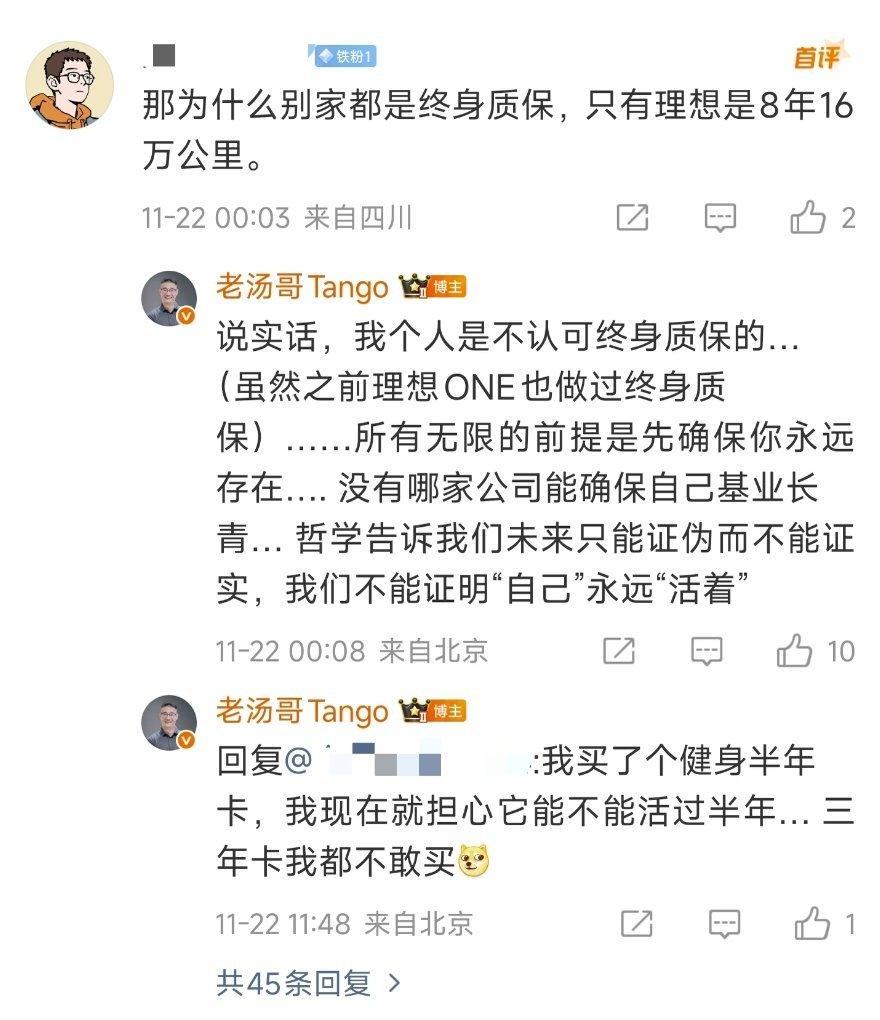 我几年前就说过,终身质保不是车的终身,是车企的终身。