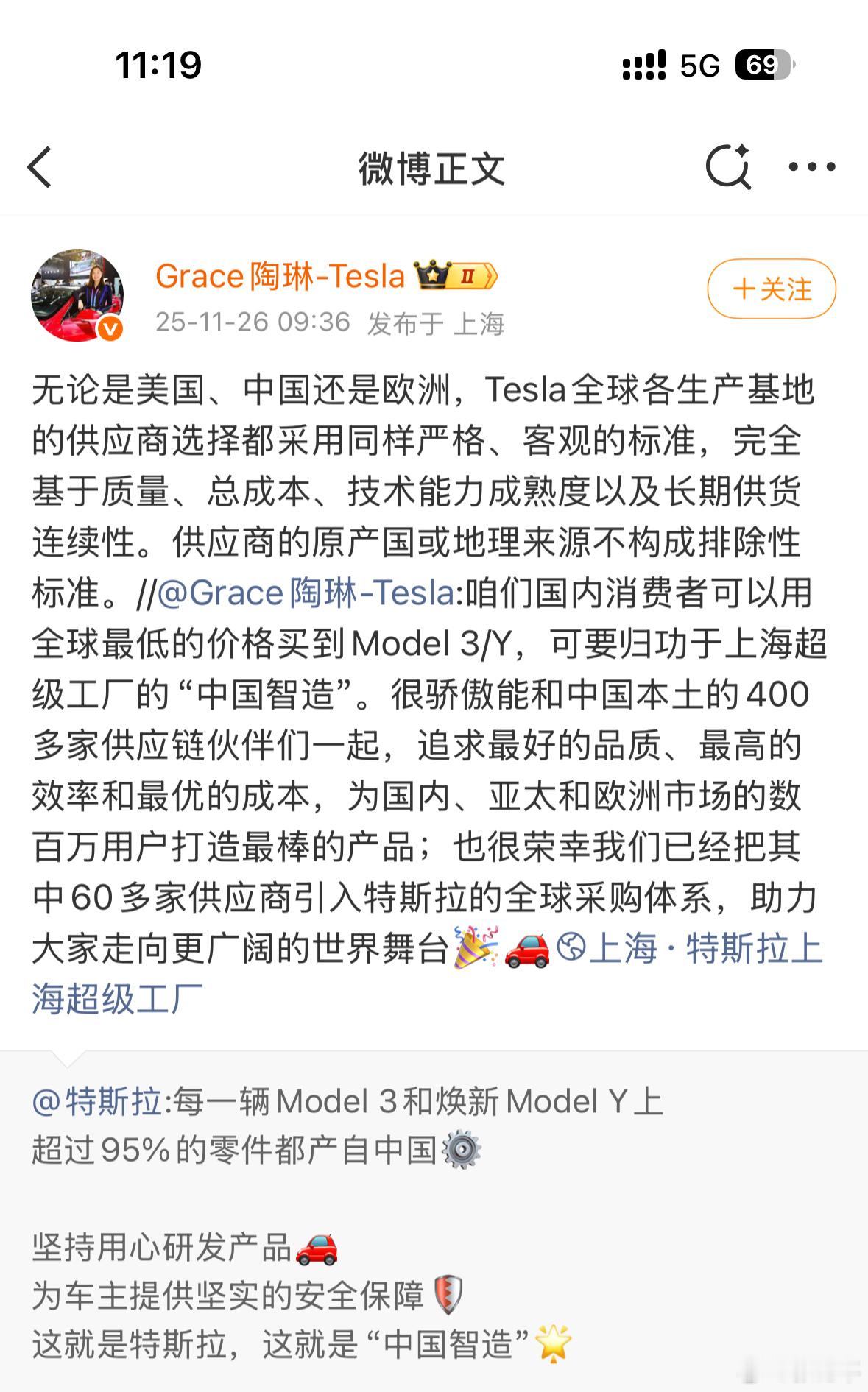 陶琳称中国供应链不构成排除性标准我首先想到的是:不都应该如此嘛。再一想:好像汽车行业真并非如此。以前市场营销老师也说过,各种xx机构、地域关系同样是重要影响因素,越是国际类商业越明显。从汽车工业上来看,中国制造的进化是突飞猛进的,成熟的技术让整个市场都受益,反观十多年多,大部分情况下我们作为消费者没得选,而现在是外资车企都在中国团队合作。新能源汽车大v聊车
