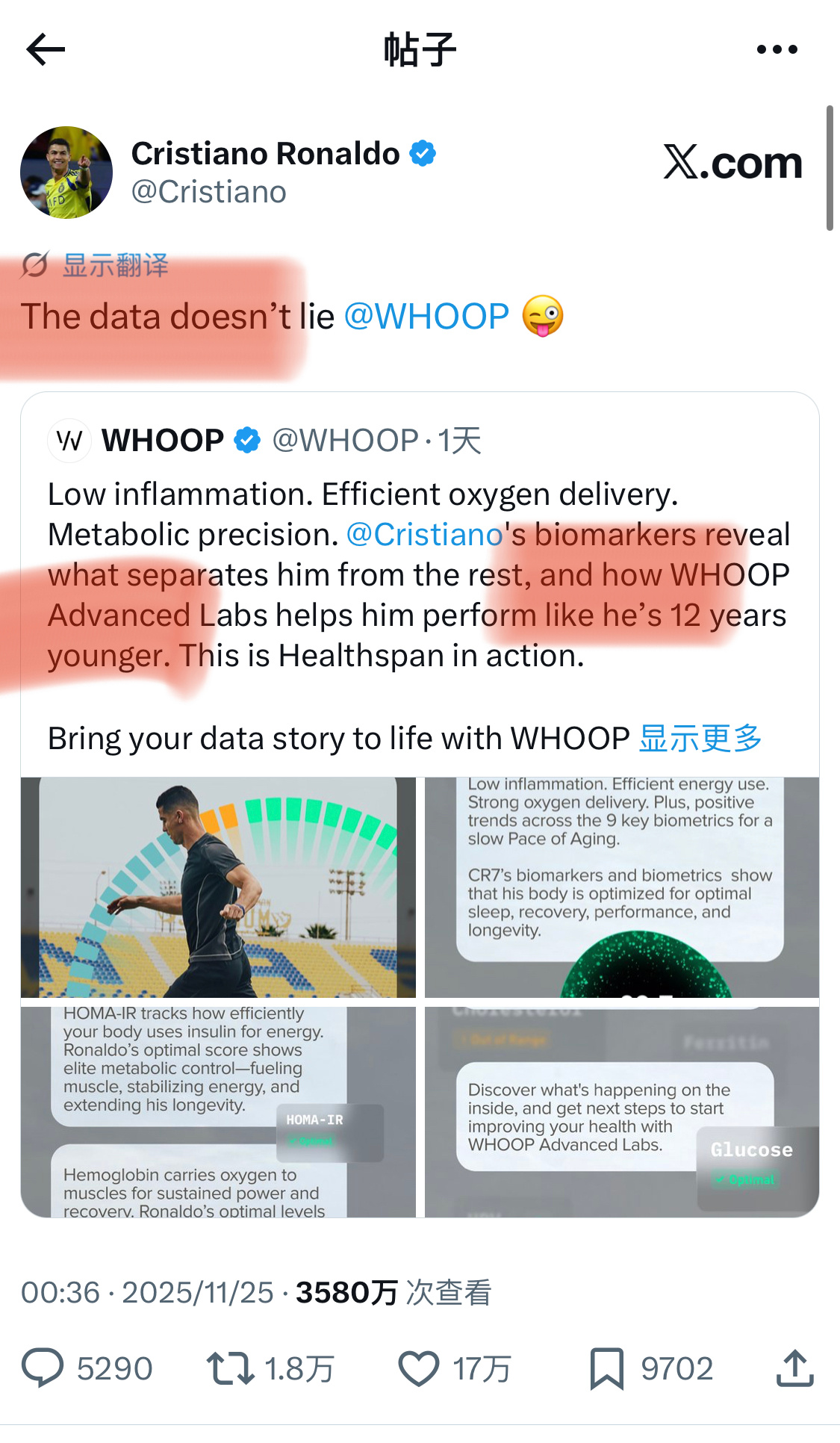 C罗身体年龄比实际年龄小12岁“数据不会说谎”