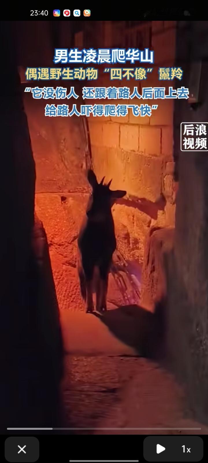 11月26日,渭南华阴市。男生凌晨一点多爬华山,到千尺幢白尺峡一带遇到“四不像”鬣羚。它没上人,还跟着路人后面上去,给路人吓得爬飞快,等它爬上去才敢上去