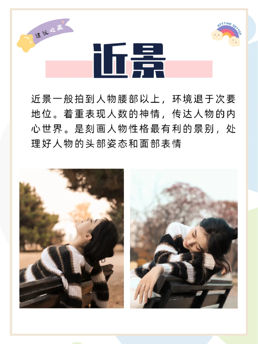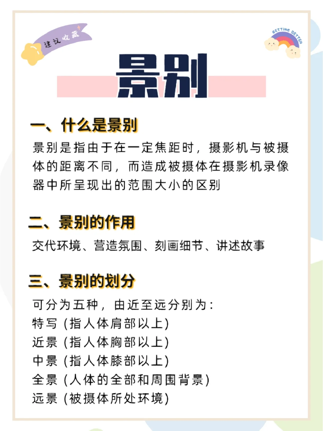 哈喽小伙伴们,大家好呀!我是摄影师半夏[萌萌哒R]. - 今天给大家分享的摄影知识点是景别,一组照片的景别切换可以带给观者不同的视觉体验,学会景别,让你的照片更具故事感[派对R]. - [星R]什么是景别 [星R]景别的作用 [星R]景别的划分 [一R]远景 [二R]全景 [三R]中景 [四R]近景 [五R]特写 - 具体的干货内容都放在图片里啦,宝子们快去看看叭,喜欢的话记得[红色心形R]和[星R],爱你们喲[赞R].
