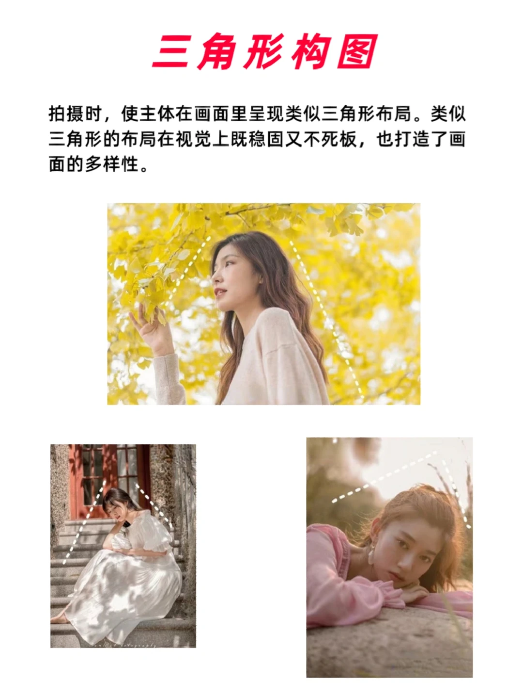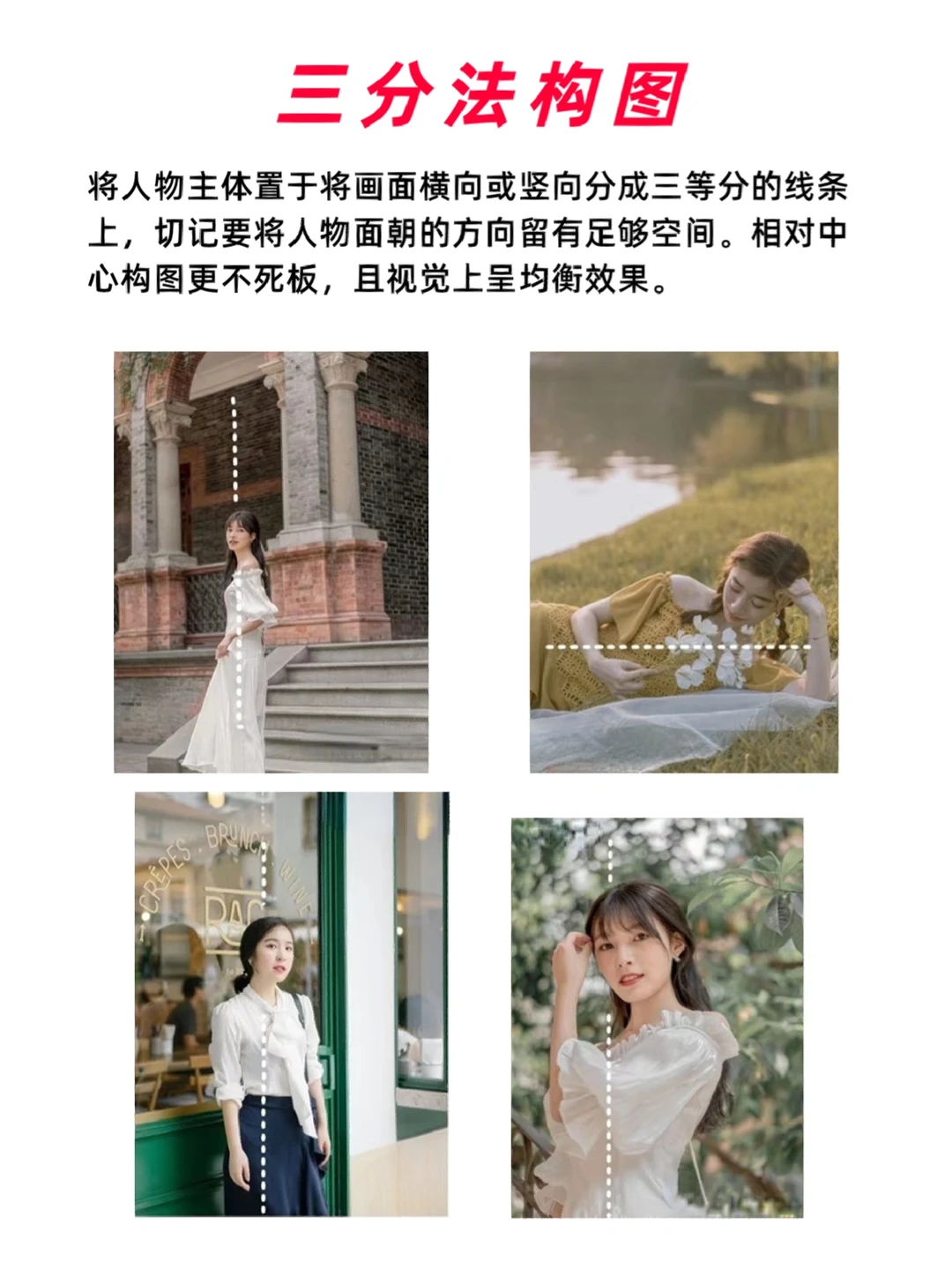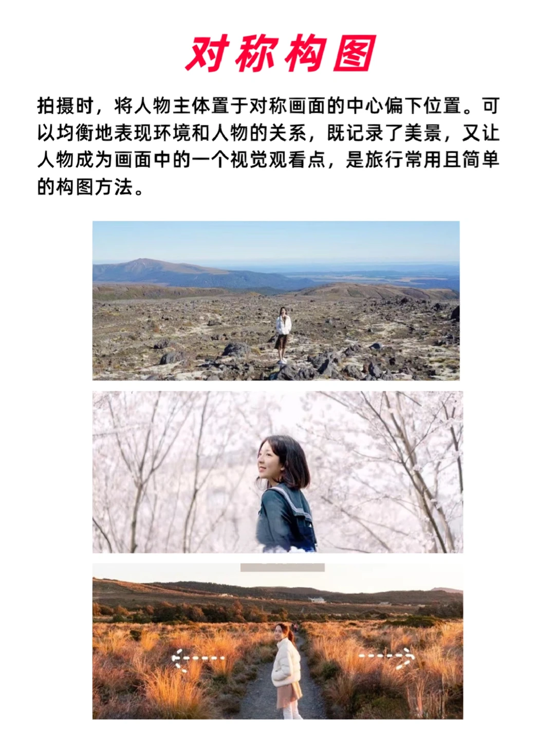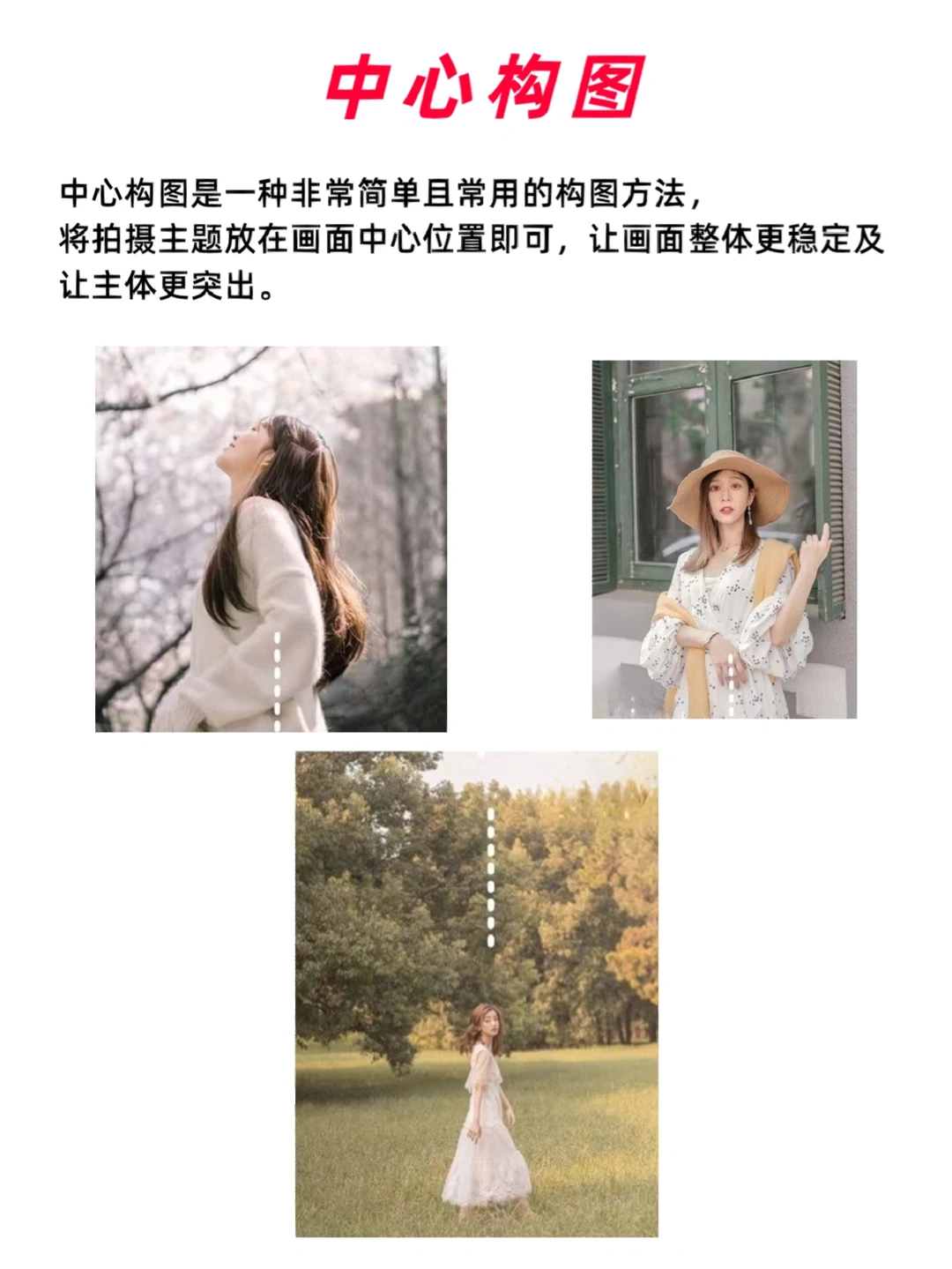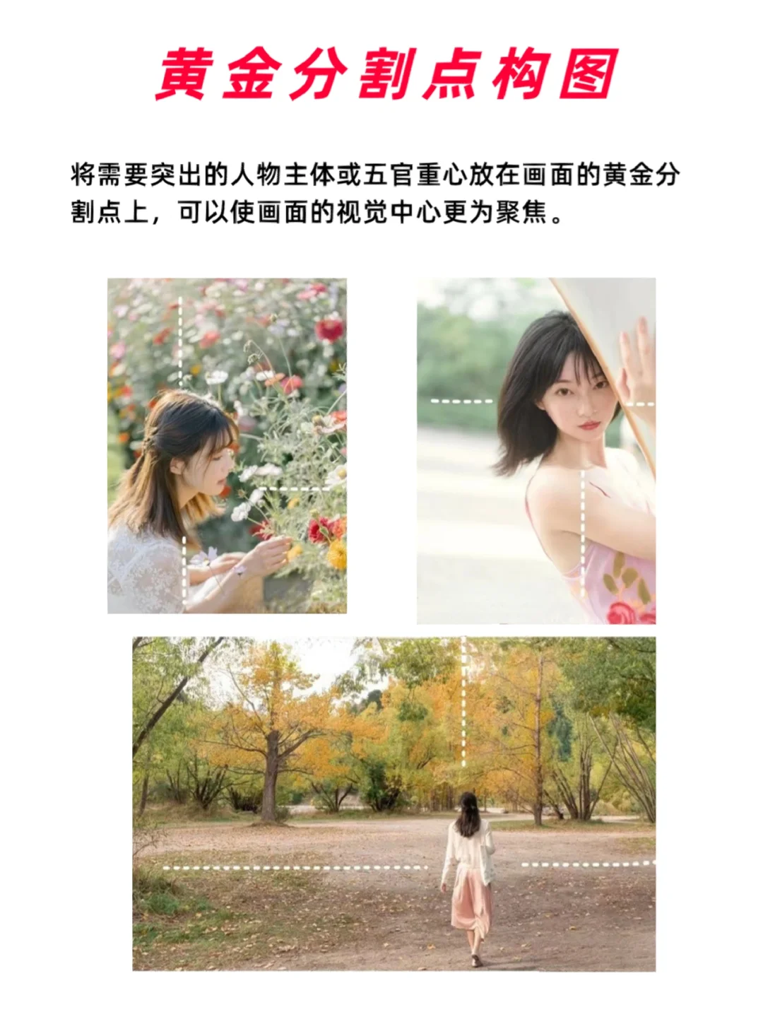 [星R]哈喽,大家好呀[萌萌哒R] 我是摄影师三秋[拍立得R] . [星R]构图可以说是摄影中非常重要的一个环节,好的构图能让照片更高级、更吸引人[赞R] . [星R]今天我就来给大家分享一下摄影当中常用的几种构图方式,简单易学,好上手[派对R] . [一R]中心构图 [二R]前景构图 [三R]框架构图 [四R]对称构图 [五R]三分法构图 [六R]对角线构图 [七R]三角形构图 [八R]黄金分割点构图 . [星R]具体对于每一种构图方式的阐述都放在图片里 ! 这里就不再重复啦[派对R] . [星R]希望这篇笔记能对你有所帮助,喜欢的话可以持续关注我的更新[派对R]有不懂的摄影问题随时可以在评论区留言[红色心形R] .