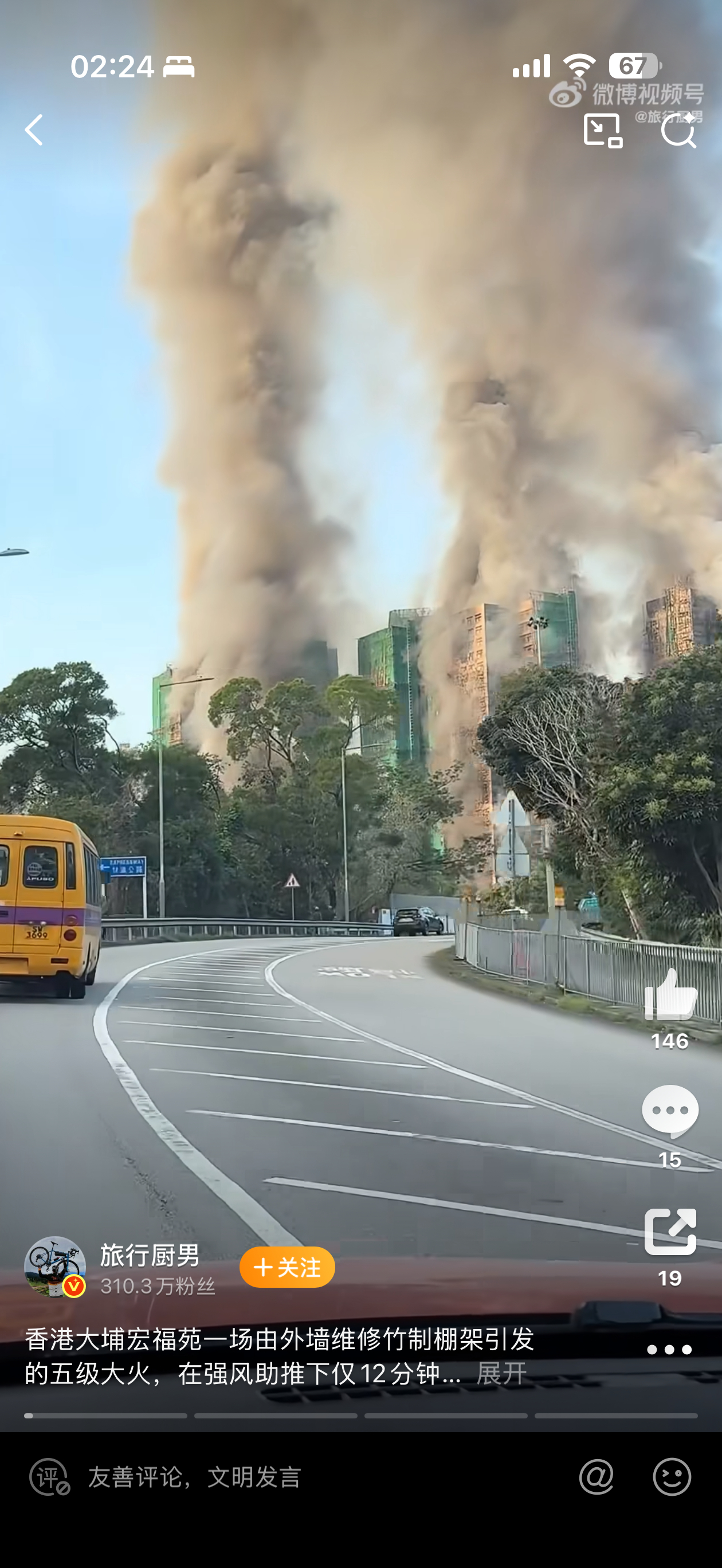 香港火灾直接诱因闭路电视拍到维修工人将未熄灭烟头丢弃在外墙绿化带,引燃竹制棚架及尼龙防风网。据说居民此前多次投诉工地吸烟问题未获整改。