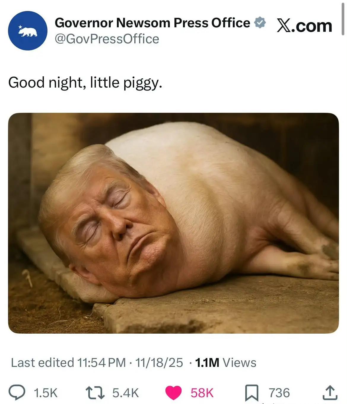 美丽国是片神奇的土地,一个加州州长居然如此“人身攻击”国家的总统,就不怕特朗普调查他么?不过纽森跟我们还是很友好的,很有种,才50多岁,加州是美国人口最多,经济实力最强的州,纽森2019年就担任该州州长了,他也是2028年美国总统大选的民主党总统候选人,前途不可限量。