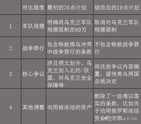28条爆改成19条,妥了! 乌克兰方面已经表示,愿意签署19条来结束停战。估计这次换大鹅不同意,因为很多关键条款被抹去了。这就意味着没有把到手的土地合法化,以后还可能会有更多战争存在,那就会陷入长久的军备竞赛。 说到底就是以当前战线为停火线,签订停火协议,不是和平协议。北朝和韩国就是签署停火协议,不是和平协议。 一旦签订停火协议,即使不打仗,也是代表大鹅和乌克兰处于战时状态,只不过就是现在不打而已,不代表以后不打了,只是临时条约,随时可以撕毁。 19条协议对乌克兰相对公正,但是对大鹅就未必,所以停战可能还不行。欧洲反面集体反对28条,但是对19条,就未必有反对。 欧洲反面可以停战,但是要补强乌克兰实力,让乌克兰一直守着欧洲东大门的安全,那么欧洲就高枕无忧了。 只能说战争开启容易,结束太难了!