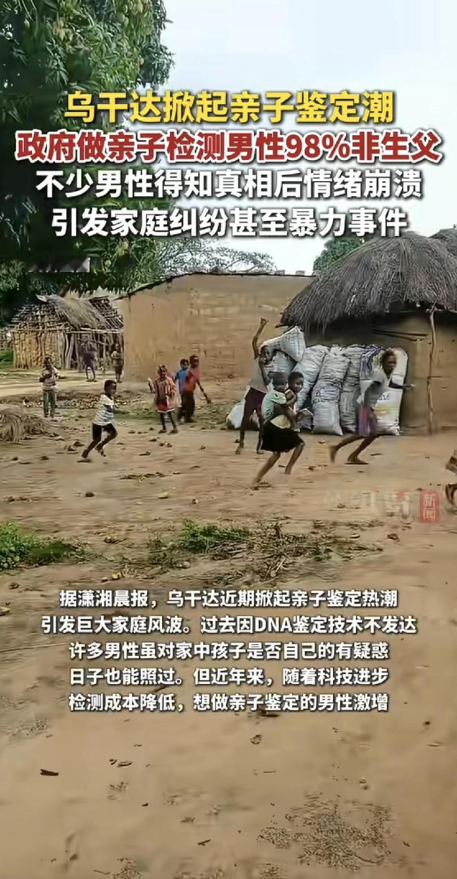 看到乌干达这个数据,确实让人震惊。 98%的检测男性都不是孩子的生父——这个数字已经高到让人说不出话。当“爸爸”们集体发现孩子不是自己的,引发的家庭地震可想而知。 但冷静想想,当真相普遍到这个程度,纠结“是不是亲生”反而没那么重要了。更值得思考的是:为什么会出现这样的社会现象?未来这些孩子该怎么办? 这已经不只是家庭伦理问题,而是整个社会需要面对的现实。比起追究过去,如何重建信任、保护无辜的孩子,才是更大的难题。