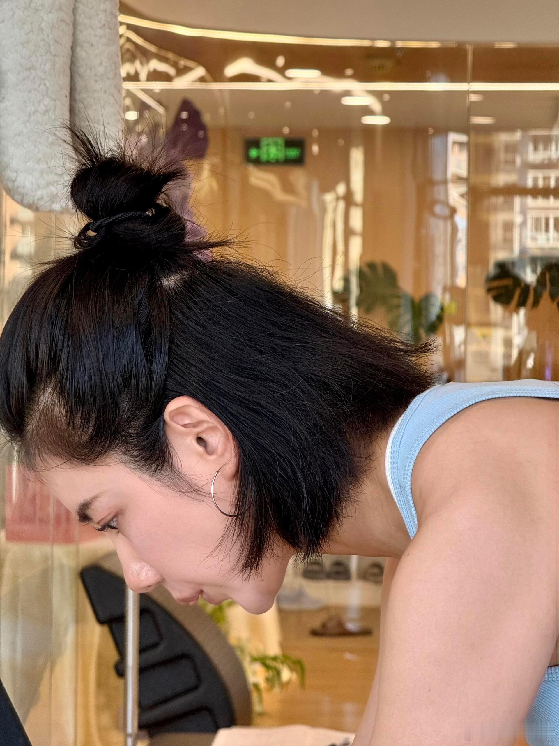 杨幂健身照终于来了这是真健身,不是摆拍因为她没化妆,粉底液被汗浸透,眼线都“