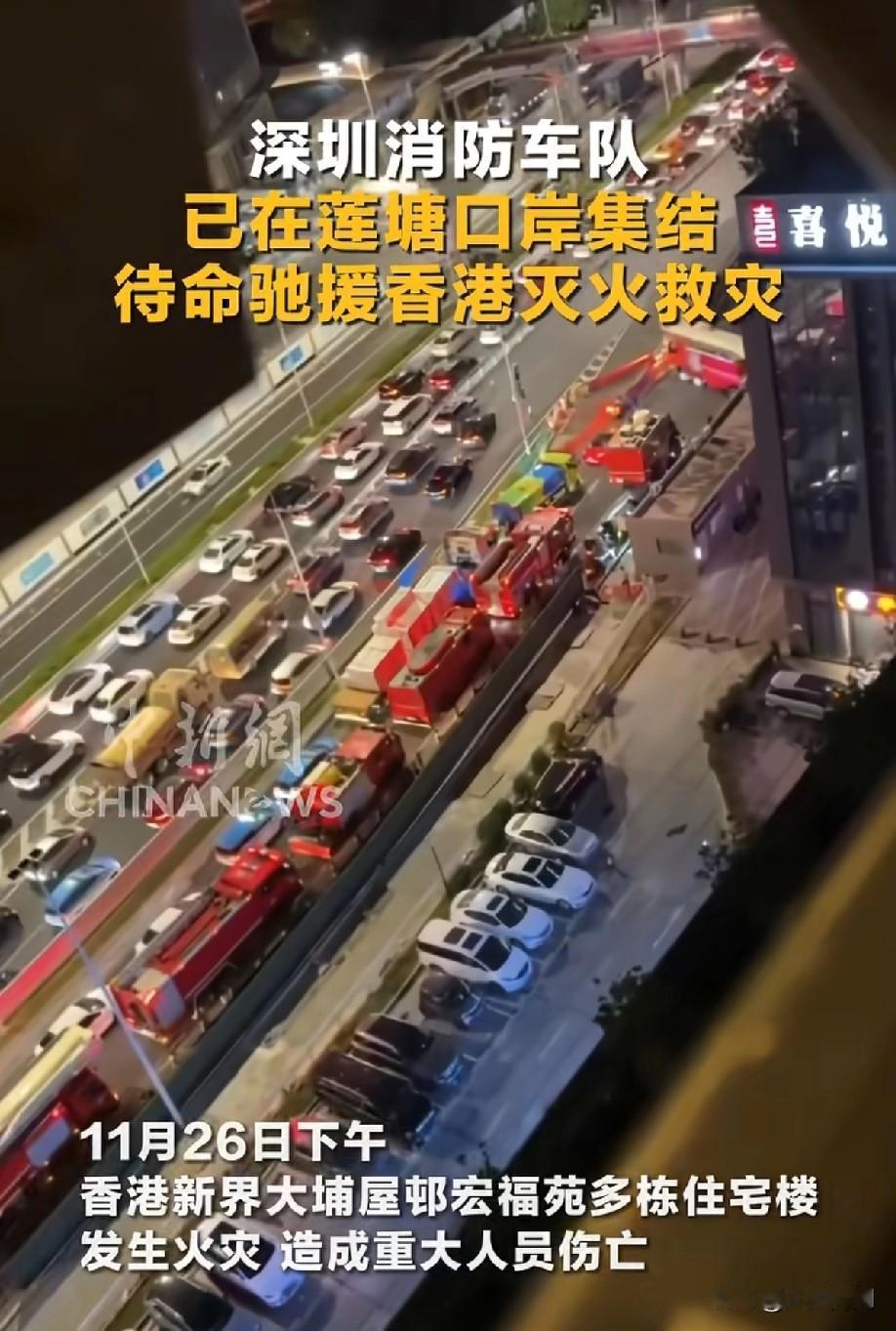 香港火灾暖心的一幕 深圳消防去口岸集结了 但是,香港那边还不打算请求支援 毕竟要是现场作业车施展不开,人去多了也白搭。 不过话说回来,有人突发奇想,要是几万架无人机表演的那些,能同时控制几千架去救火,那多牛啊!深圳这边准备得妥妥的,一旦香港求援,立马就能出发,这机动性杠杠的!为啥要提前准备呢?灾情可不等人,接到命令再组队,那耽误的每一分钟都可能造成严重后果。 我觉得这种守望相助的态度真的超棒。大家说,要是真能用无人机救火,可行性大不大呀?快来一起讨论讨论!