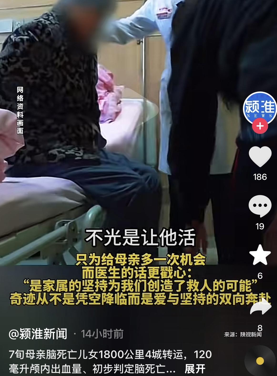 泪目!甘肃一7旬老人被判“脑死亡”,可子女不信邪,花4万包了辆救护车,跨越1800km,将老人送到西安大医院,到医院时老人已出现脑疝,女儿当场表态:我不想这样再把妈妈拉回去,请你再试试。最终,老人恢复自主意识,医生说:是家属的坚持,为我们创造救人的可能。 老人颅内出血被判“脑死亡”,旁人都劝他们节哀,可三兄妹还是不肯放弃! 等赶到医院,老人已经脑疝,这可是颅内出血里最要命的情况,一侧瞳孔都放大了,全靠呼吸机吊着最后一口气。医生都直摇头,说老人年纪大,能救活的希望太渺茫。但女儿声音颤抖,却无比坚定:“我不能就这么把妈拉回去,大夫,您再试试!” 奇迹真就发生了!老人恢复了自主意识,摘掉了呼吸机。医生都感叹,行医多年,这种情况太少见。 子女的坚持意义非凡。父母对我们的爱毫无保留,倾其所有把我们养大,他们老了,咱就得拼尽全力守护。孝顺不是空话,是危难时刻绝不放弃。脑出血