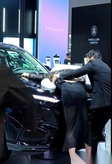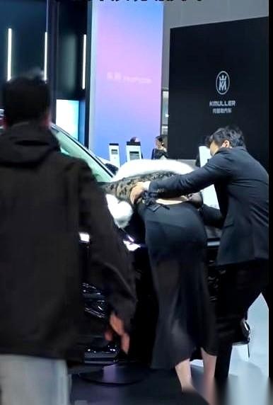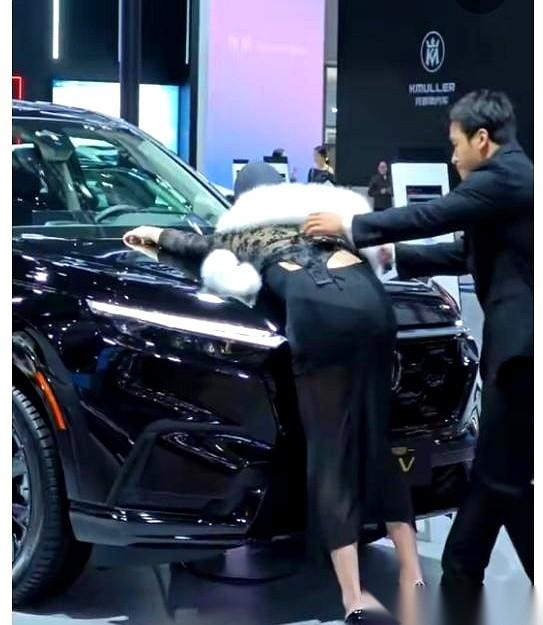 广州车展,一个女模特趴在崭新的车头上,哭得撕心裂肺。 妆都花了,整个人都在抽搐,