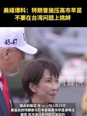 美国媒体爆料特朗普施压高市早苗:不要在台湾问题上挑衅! 特朗普这么做的目的只有一个, 特朗普第二任上台后,好不容易才沟通到如今的局面,明年也想来访问中国,如果放任日本继续搞事,而且高市早苗搞过头了,这肯定会严重影响特朗普的一些安排。特朗普的计划不是要战争,他要的是制造业回流美国,要的是美国的利益,而不是为了所谓的盟友而出卖美国的利益,这才是商人的本质,他才不管什么全球战略…