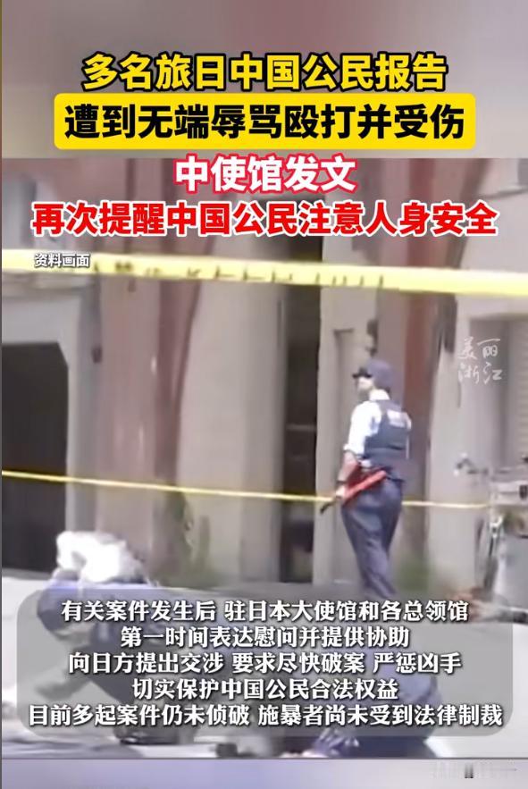 多名旅日同胞遭殴打!驻日使馆紧急发声,近期别去日本! ⚠️ 紧急预警!所有计划赴日或在日的中国同胞请注意!这则消息关乎你的人身安全,务必看完并转发给身边人! 11月26日,中国驻日本大使馆的一则通报让无数国人揪心——近年来日本治安环境持续恶化,而从今年7月开始,驻日使领馆接到的中国公民被歧视类案件求助,出现了明显增长,进入11月后更是达到了高峰。 更让人愤怒的是,近日已有多名旅日中国公民反馈,自己在日本街头遭到了无端的辱骂和殴打,最终受伤就医。想象一下,在异国他乡,没有任何缘由就被暴力对待,那种无助和恐惧,光是想想就让人脊背发凉。 🇨🇳 大使馆的提醒从来不是空穴来风,每一个案件背后都是同胞的血泪。出门在外,我们最看重的就是安全感,可如今日本的环境已经无法给旅日中国公民这份基本保障。 ❤️ 在此郑重提醒: 1. 近期有赴日计划的同胞,请务必取消行程,安全永远是第一位; 2. 目前仍在日本的同胞,尽量减少外出,避免前往人员密集场所,夜间绝不单独出行,遇到危险第一时间联系中国驻日使领馆(领保电话:03-3403-3065); 3. 请大家积极转发扩散,让更多在日或计划赴日的同胞看到这份提醒,避免悲剧再次发生! 同胞的安全需要我们共同守护,别让“出门在外”变成“提心吊胆”。扩散出去,为身边的同胞筑起一道安全防线! 多名旅日中国公民遭殴打受伤 中国驻日使馆提醒 旅日同胞安全 近期避免前往日本