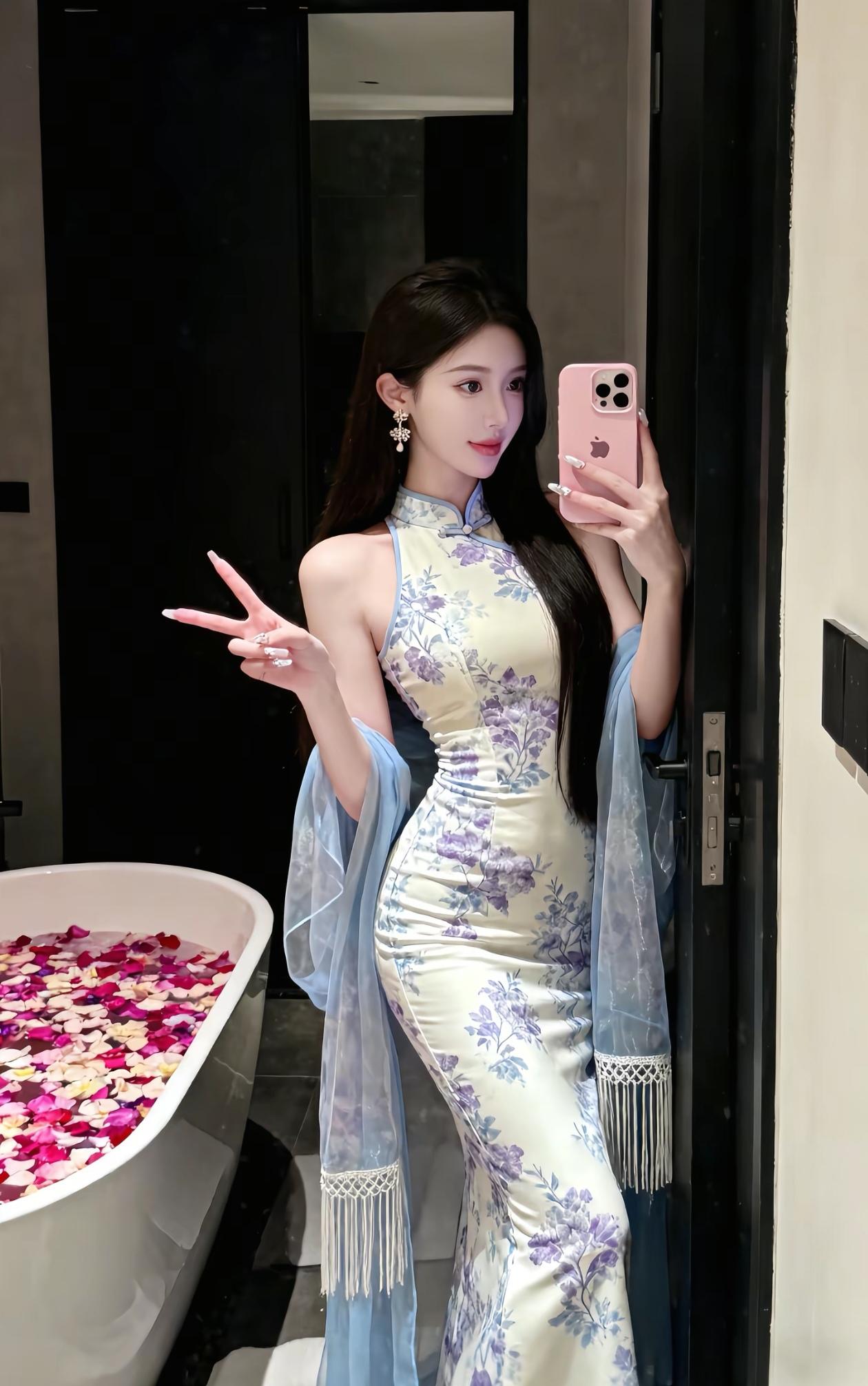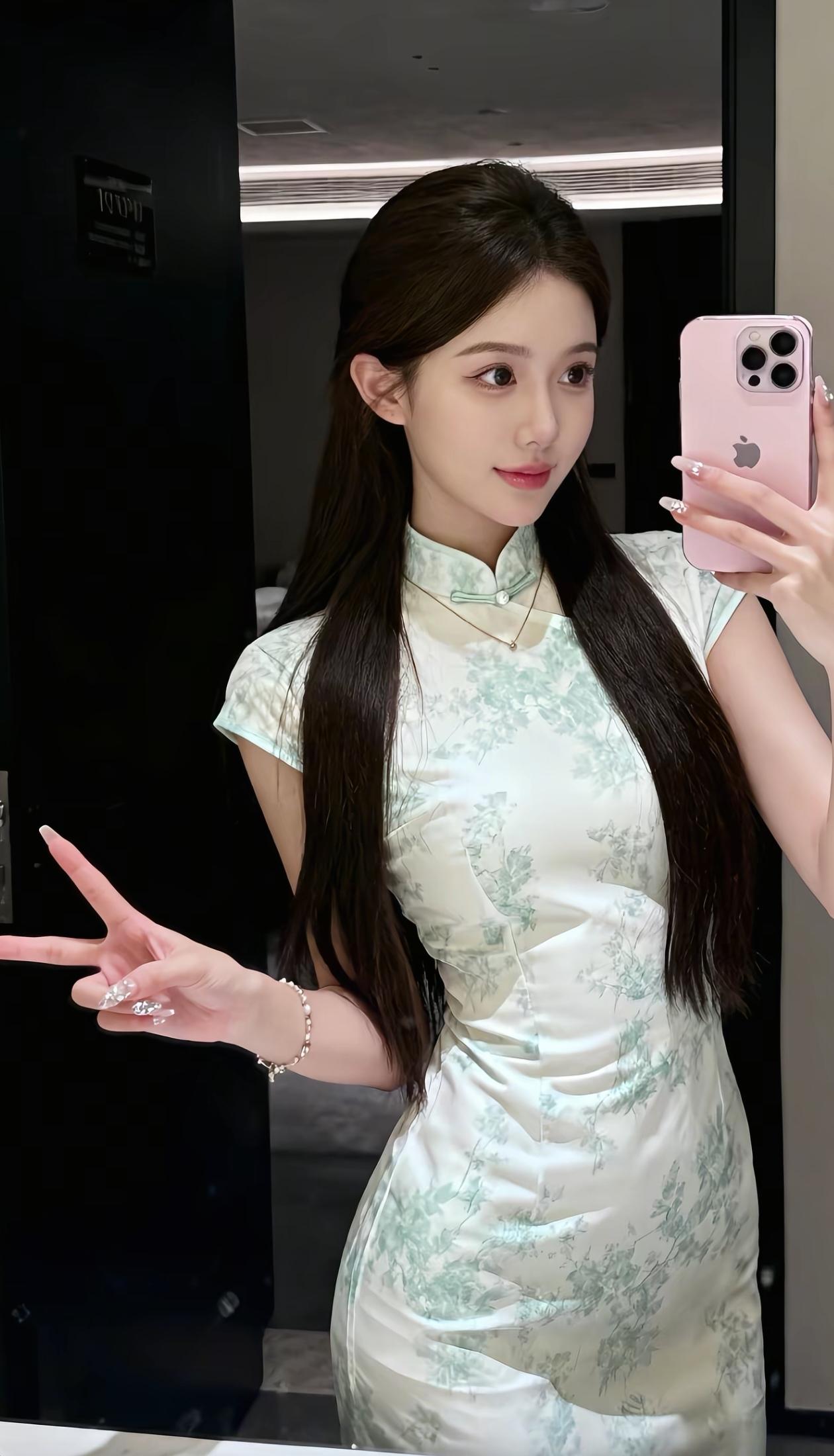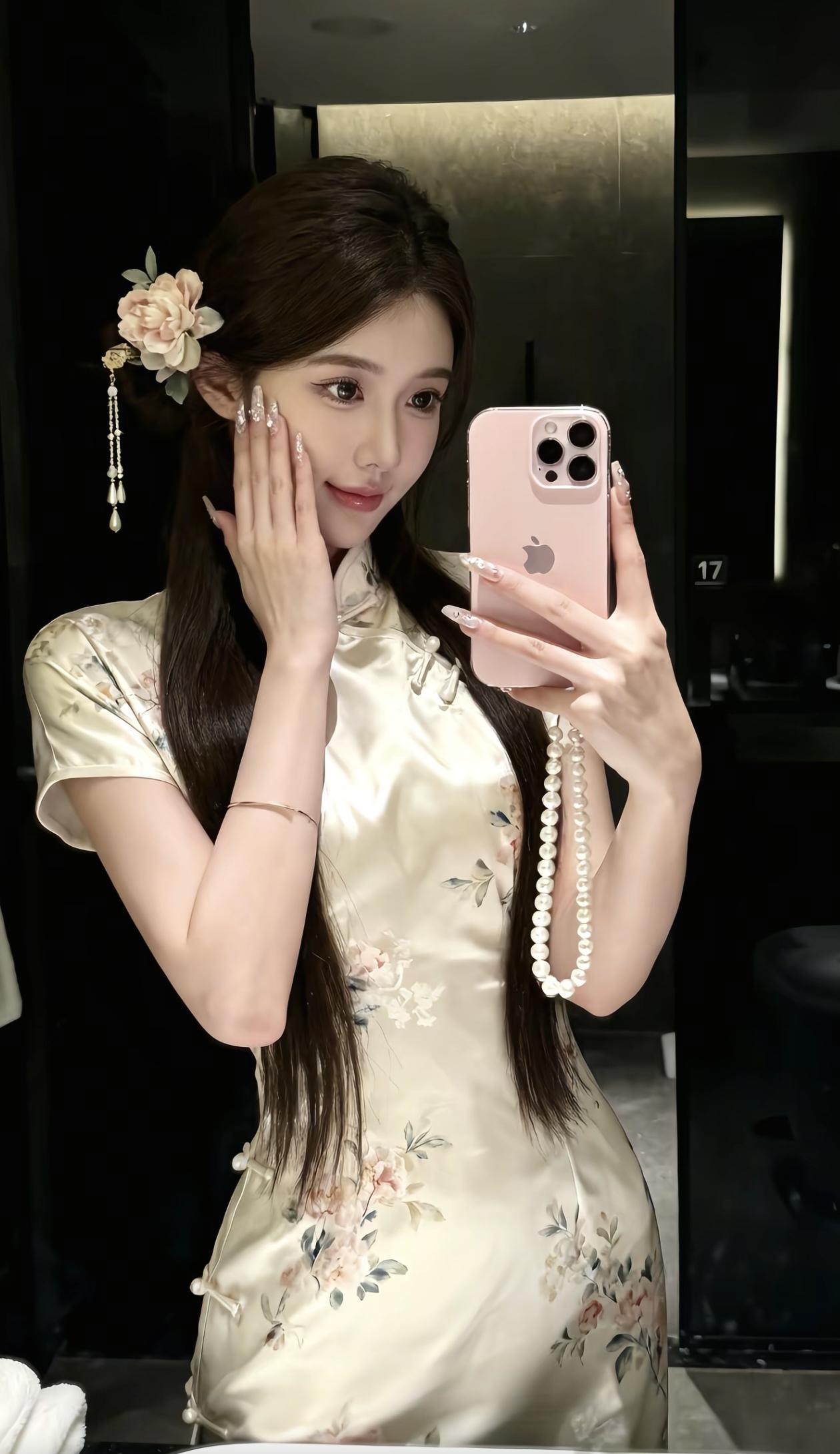 优雅旗袍照,镜中仙子,古典与现代的完美融合