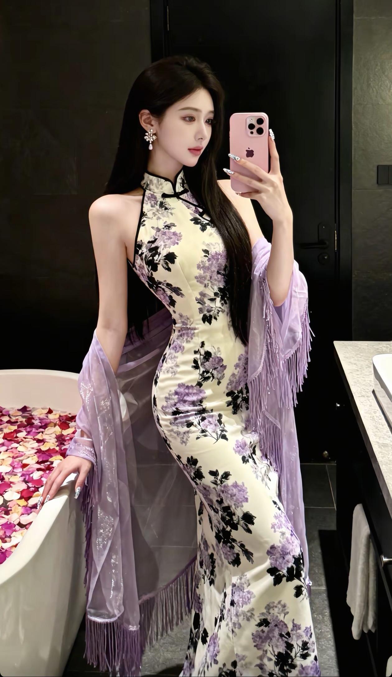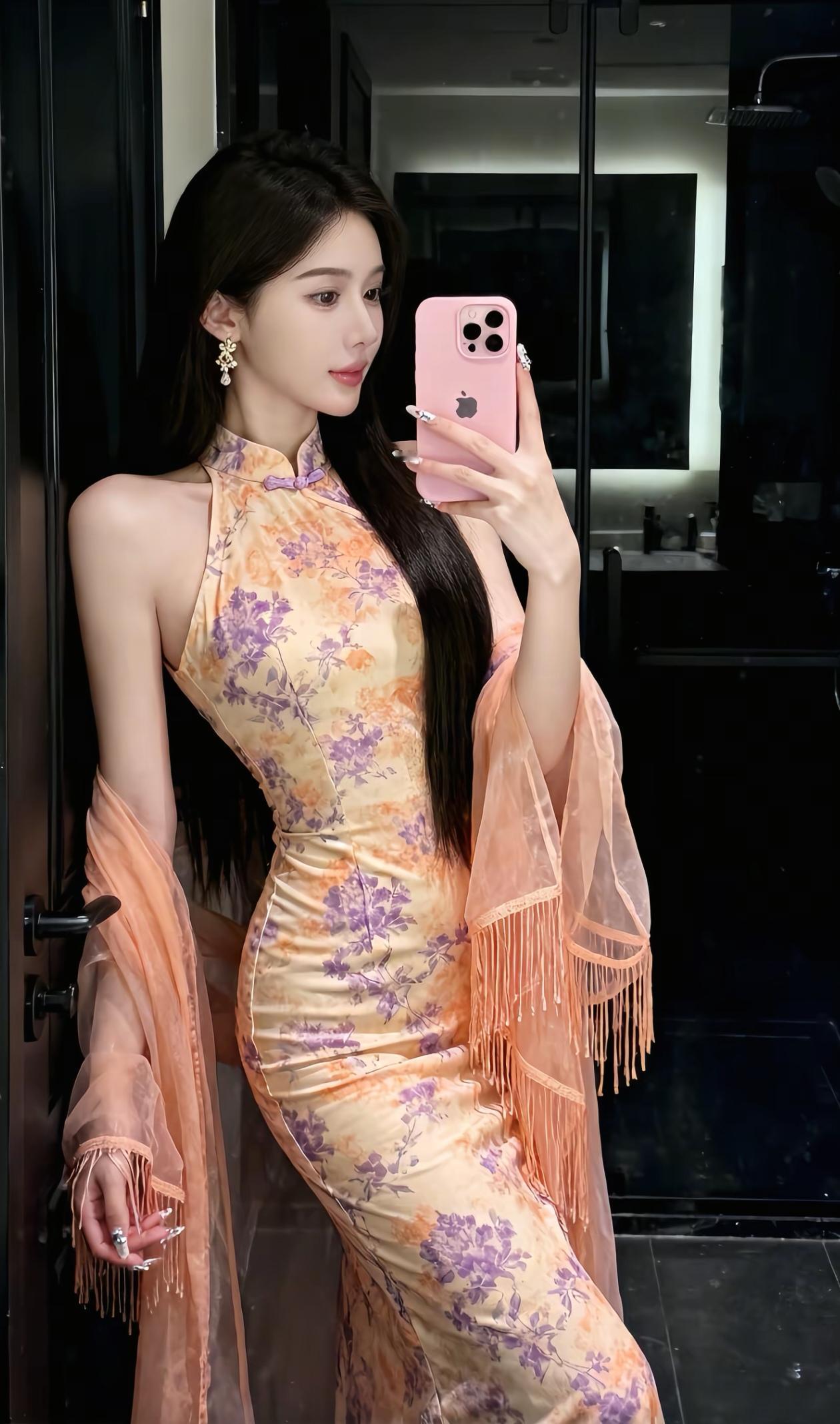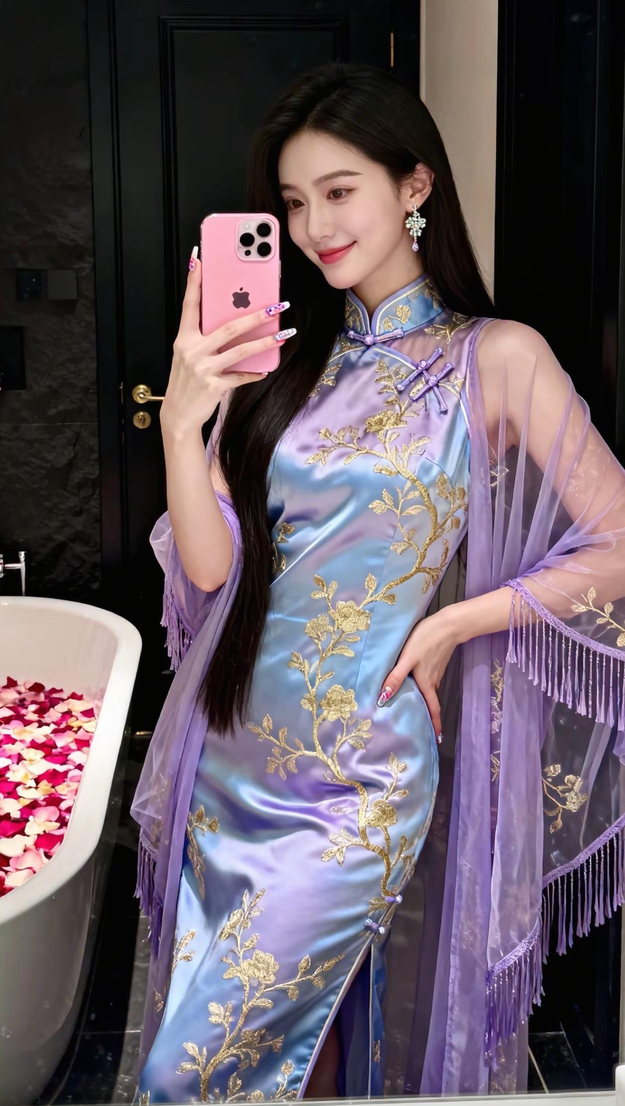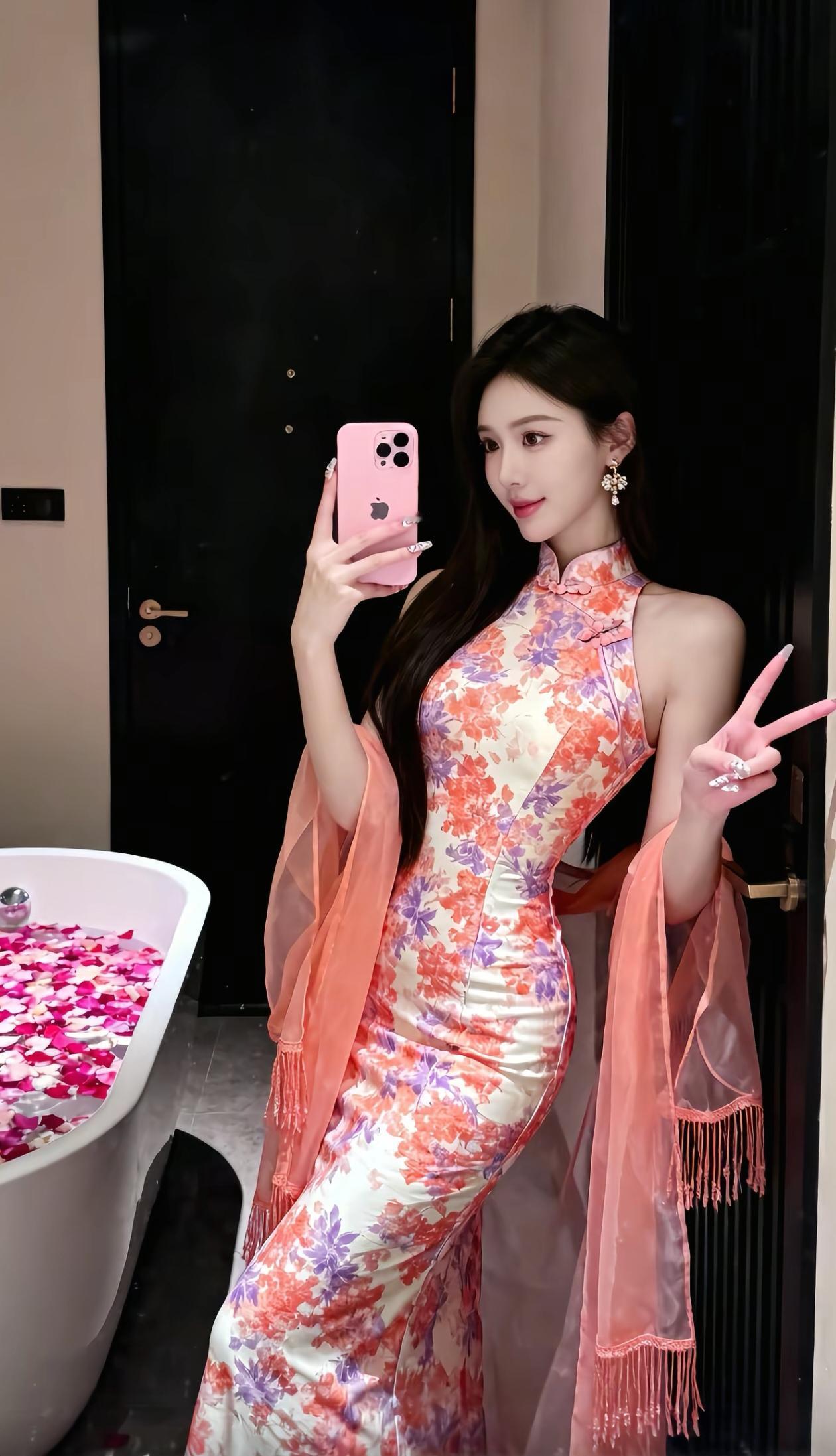 优雅旗袍照,镜中仙子,古典与现代的完美融合