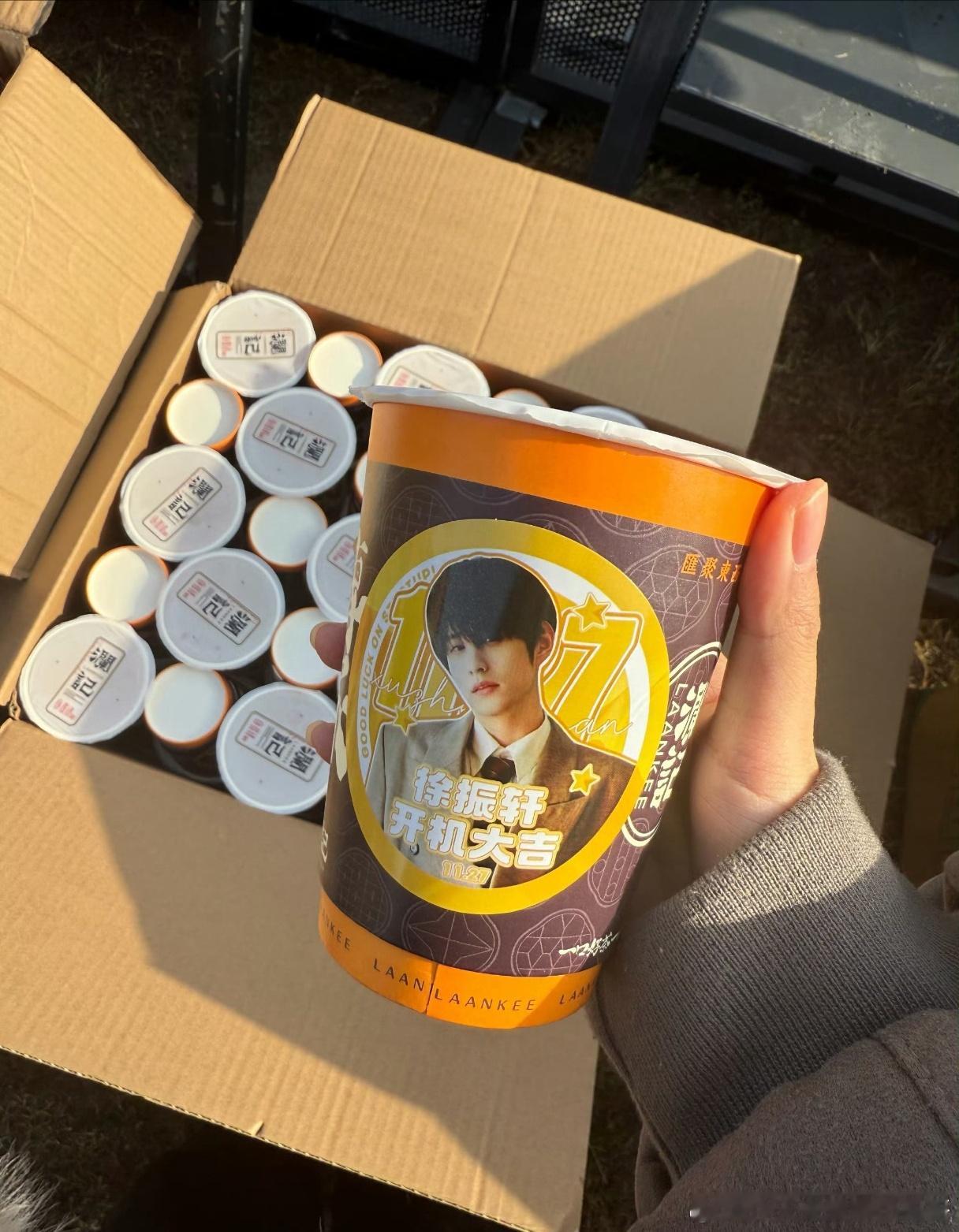 徐振轩新剧开机逆应援,不仅有澜记鸡蛋仔加柠檬茶还有好几种奶茶, 好暖心