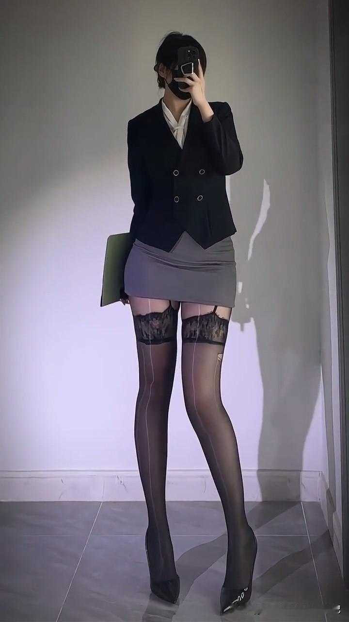 想让职场穿搭多几分女人味?试试把“硬朗”和“柔媚”做个平衡。 像这套:黑色双排扣西装保留干练感,内搭白衬衫打底,换条浅灰包臀裙,再用蕾丝黑丝和尖头高跟把精致感拉满,手里夹个文件夹,既有职场人的利落,又藏着不经意的柔媚,把“专业”和“女人味”融合得刚好,通勤时气场和风情都不落下。 要不要我帮你整理一份职场增加女人味的穿搭小技巧清单,让你日常搭配更省心?职场穿搭怎样更显女人味?职场女性怎么穿着显得干练