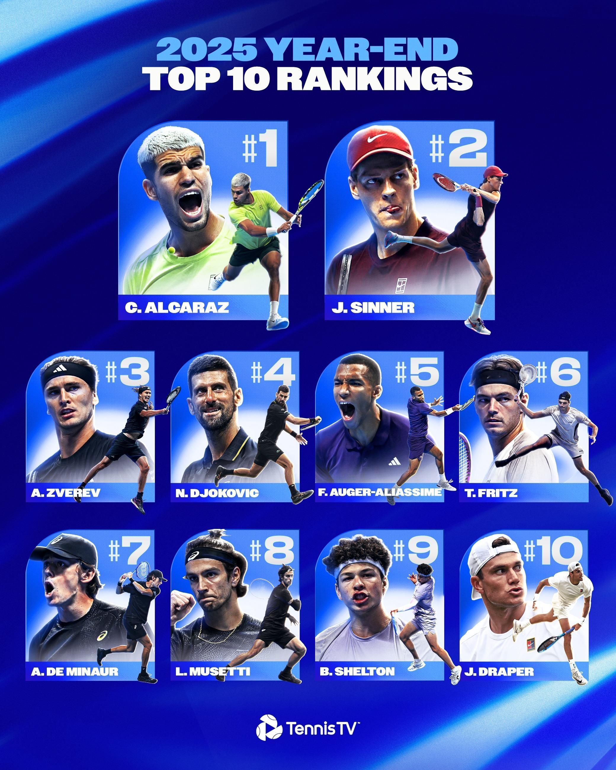 午间无奖竞猜:2025赛季ATP年终排名前十榜单揭晓,明年谁会进榜谁会跌出?有人能打破阿尔卡拉斯和辛纳的二人转吗?网球talking大会