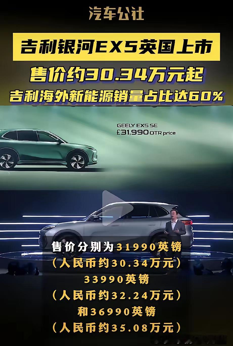汽车圈确实内卷外溢了元plus英国卖3.6万英镑起步,吉利的ex53.1万英镑