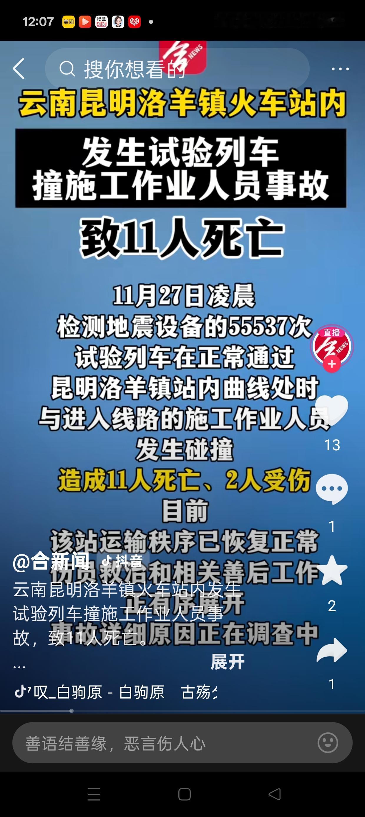 生命无法试验也不能去实验!昆明站区的11次无声告别让人痛的无法呼吸 砰—— 一声刺耳的巨响划破昆明站区的夜空,11个为生活奔波的普通人,生命永远停在了那个凌晨。 他们或许是刚下夜班的工人,或许是赶早班的勤勉人,却在这一刻,被一列试验列车撞碎了所有未来。 背后的家庭,该如何接受这样残酷的黎明? 一、他们是谁?我们不敢细想 凌晨时分,大多数人还在沉睡,而这11名行人,已为了生计奔波在暗夜里。 他们可能是谁的父亲、谁的儿子、谁的家里的顶梁柱。 一场试验运行,一次未能避开的相遇,背后是11个家庭的崩塌。 安全,本不该是事后的一句“如果当初”。 二、试验列车,不能成为“失控的箭” 作为铁路从业者,我必须说:试验列车不同于常规运营,它的运行时段、路线都具有特殊性。 但特殊性,绝不等于安全可以打折。 是否做到了全封闭管理?警示是否到位?巡查是否无死角? 每一个环节的松懈,都是对生命的漠视。 三、安全,不是口号而是底线 悲剧一次又一次提醒我们:安全不是写在文件里,而是要刻在每一次调度、每一道流程、每一夜的值守中。 铁路部门必须压实责任,而我们也应自觉——铁路线不是便道,没有侥幸可言。 四、愿逝者安息,更盼生者警醒 救援人员赶到了,医护赶到了,但有些人,却再也回不了家。 我们哀悼,我们追问,我们更要行动: 是否能在试验前多重确认?是否能在关键路段加强防护? 是否能让每一个户外劳动者,不再用生命去赌明天? 结语 这不是意外,是可以避免的悲剧。 愿逝者安息,也盼所有在暗夜中、在风险中劳作的人,被制度守护、被流程保障、被我们每个人记得! 他们值得平安到家,而我们,不能再失去更多。