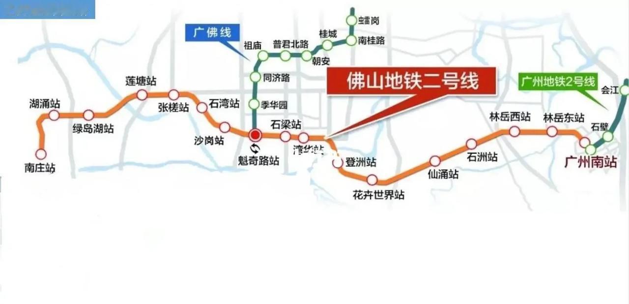 佛山地铁2号线 佛山地铁2号线是连接佛山与广州的城市轨道交通线路,于2021年12月28日开通初期运营,2025年11月2日转入正式运营。线路起于佛山市禅城区南庄站,途经佛山禅城、南海、顺德区以及广州市番禺区,止于广州市番禺区广州南站,全长32.4公里,其中地下线22.9千米,地面和高架线路8.3千米,设17个站点,列车采用6节编组B型列车。 作为佛山首条自主设计、建设并运营的地铁线路,它实现了佛山人搭乘自家地铁出行的愿望,还促进了广佛轨道交通互联互通。2号地铁