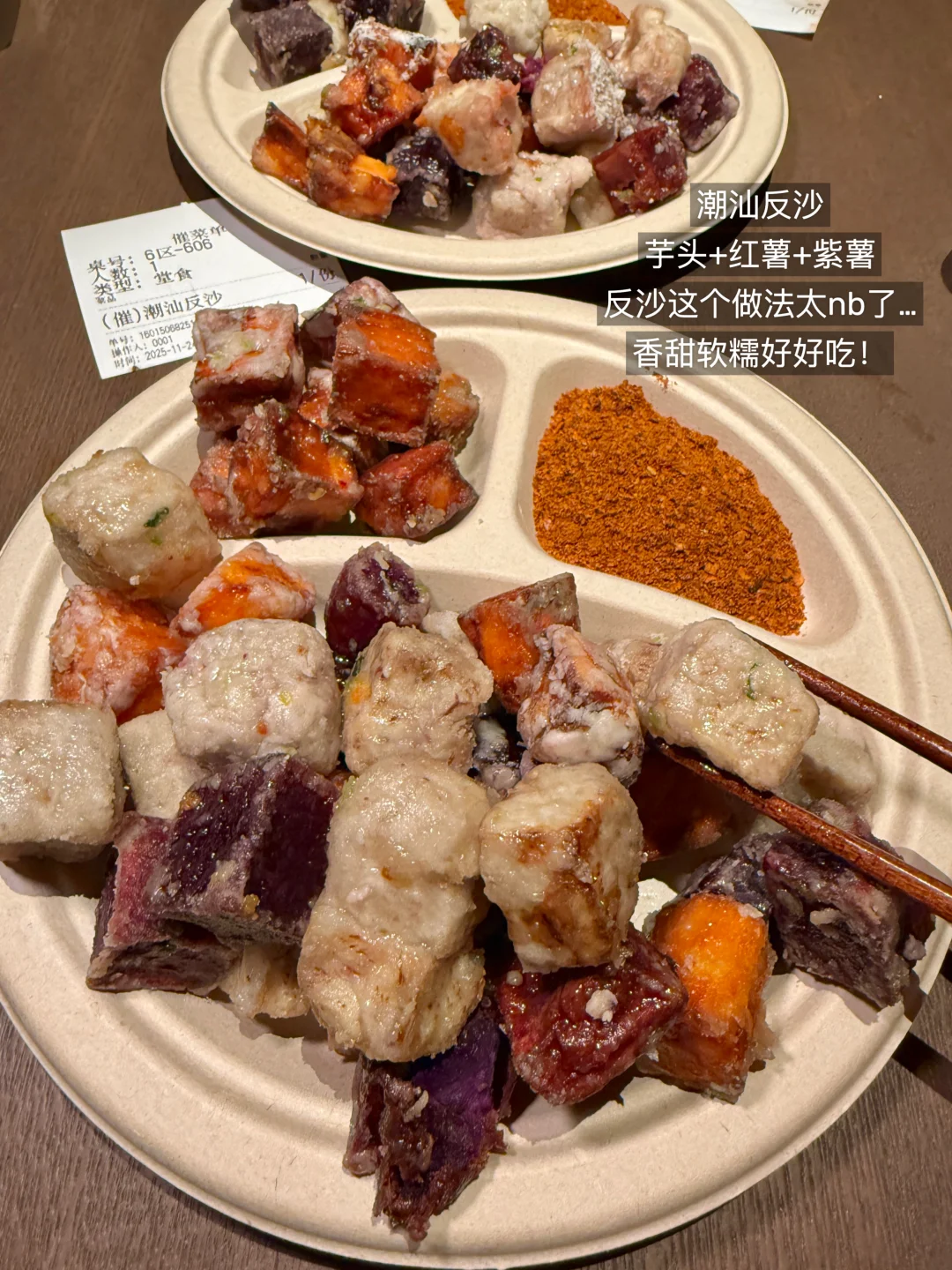 反沙芋头+红薯+紫薯,甜滋滋软糯糯的,确实是很地道的潮汕风味!吃完还打包了一份香脆蛋黄卷!