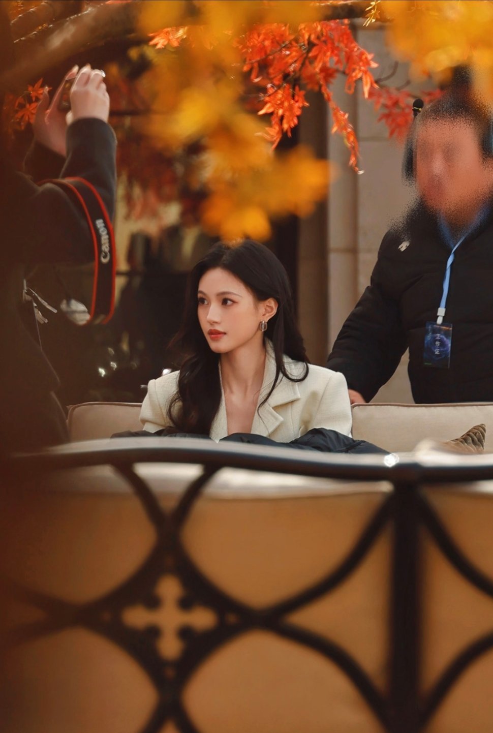 高圆圆旁边这是谁啊??身材好好啊,就是这个裙子的布料……