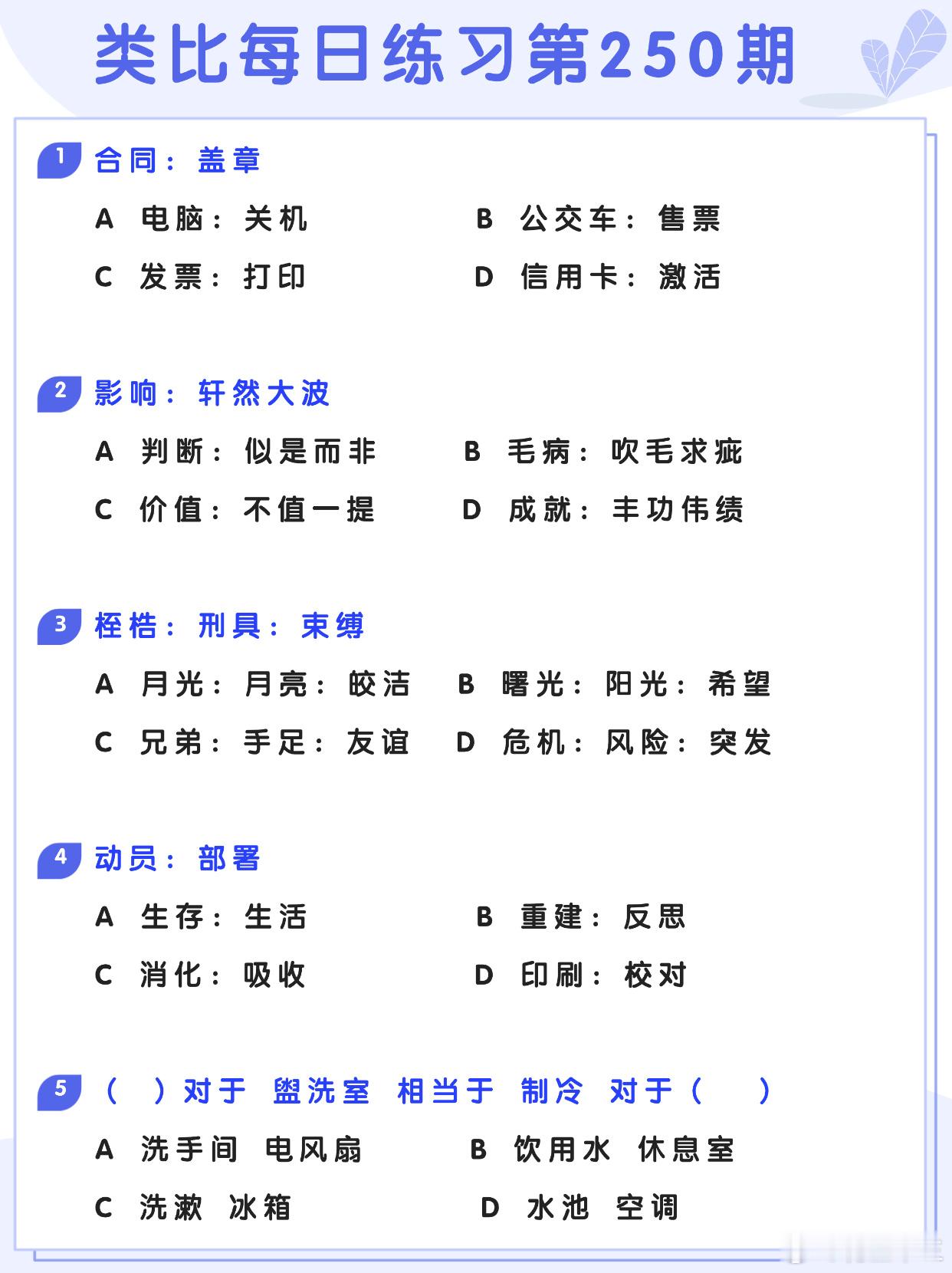 图推类比每日练习第250期图推难度:☆☆类比难度:☆☆开学元气加油站决战公考省考国考