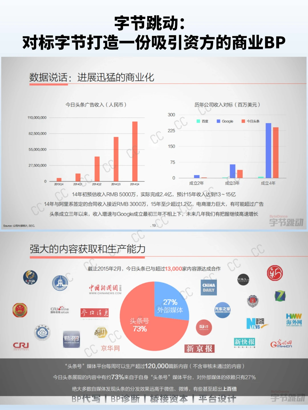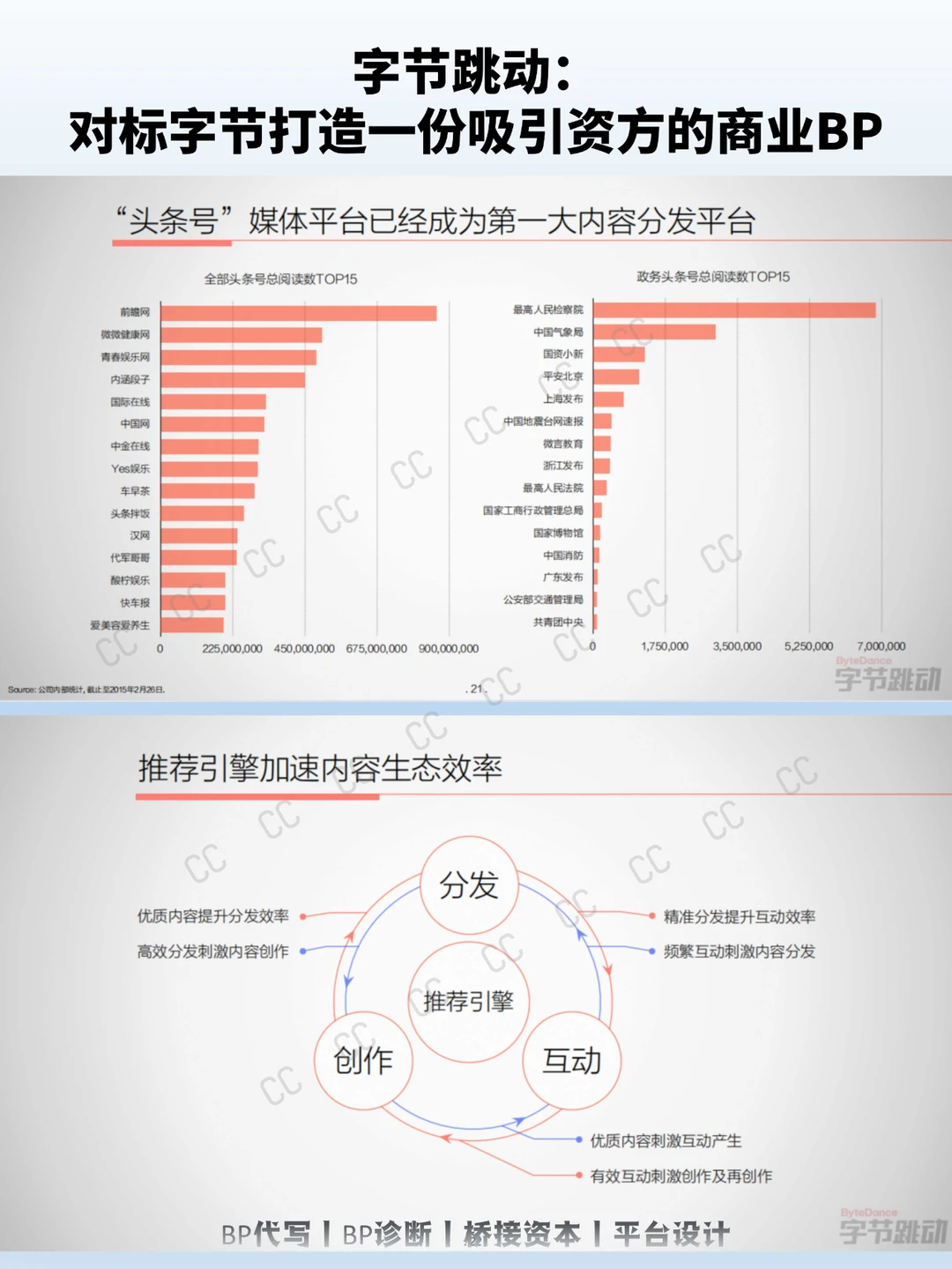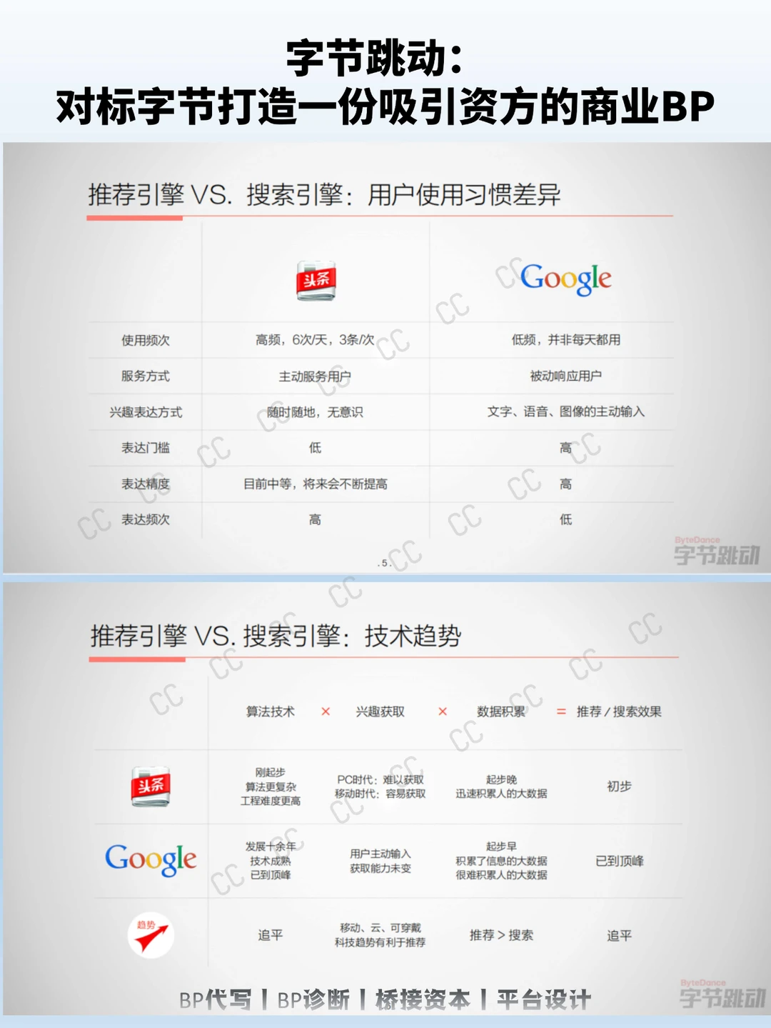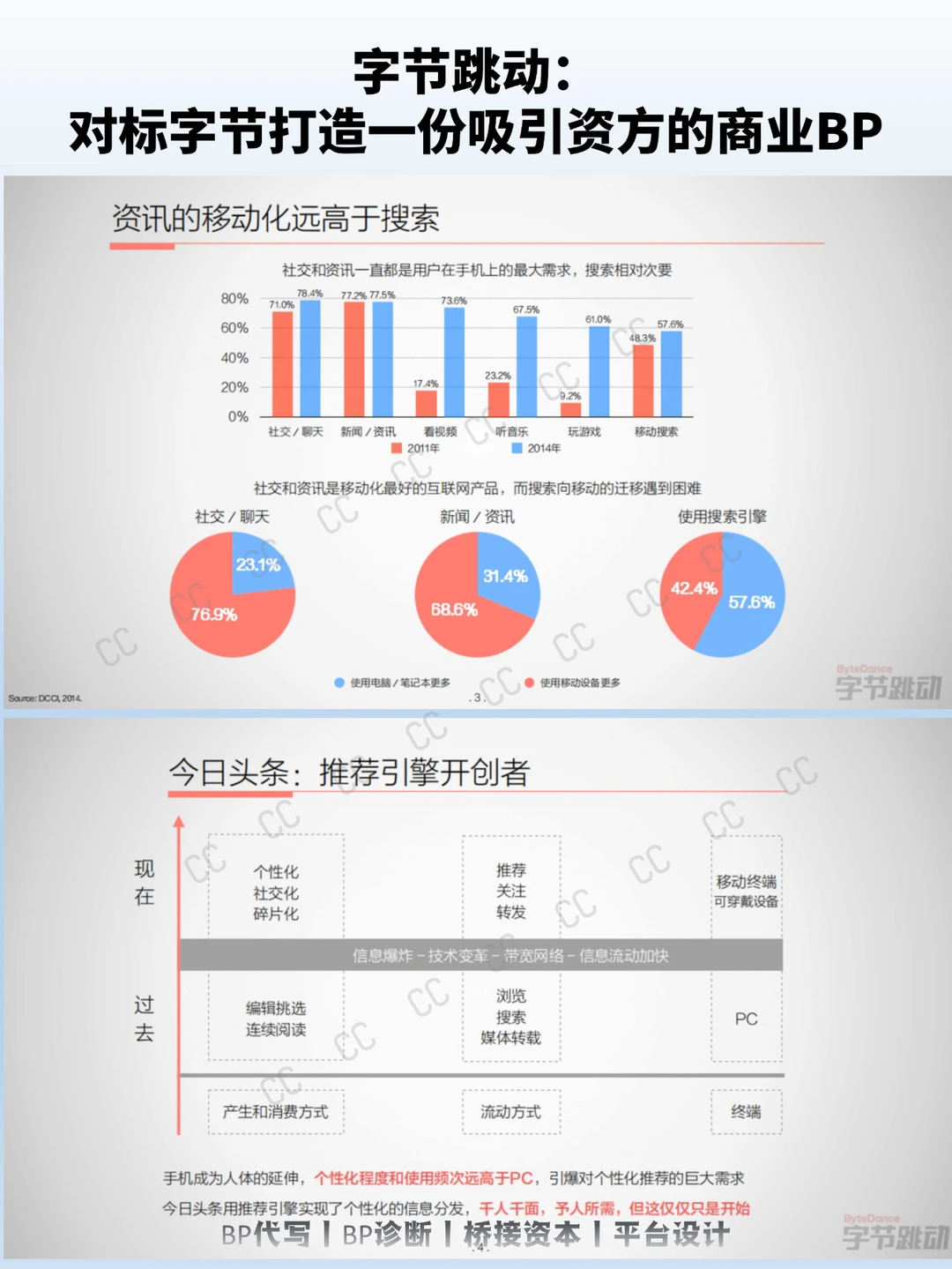 字节跳动在2015年的PPT中,用“推荐引擎将超越搜索引擎”这一明确且前瞻性的论点开篇,为整个计划书定下基调。