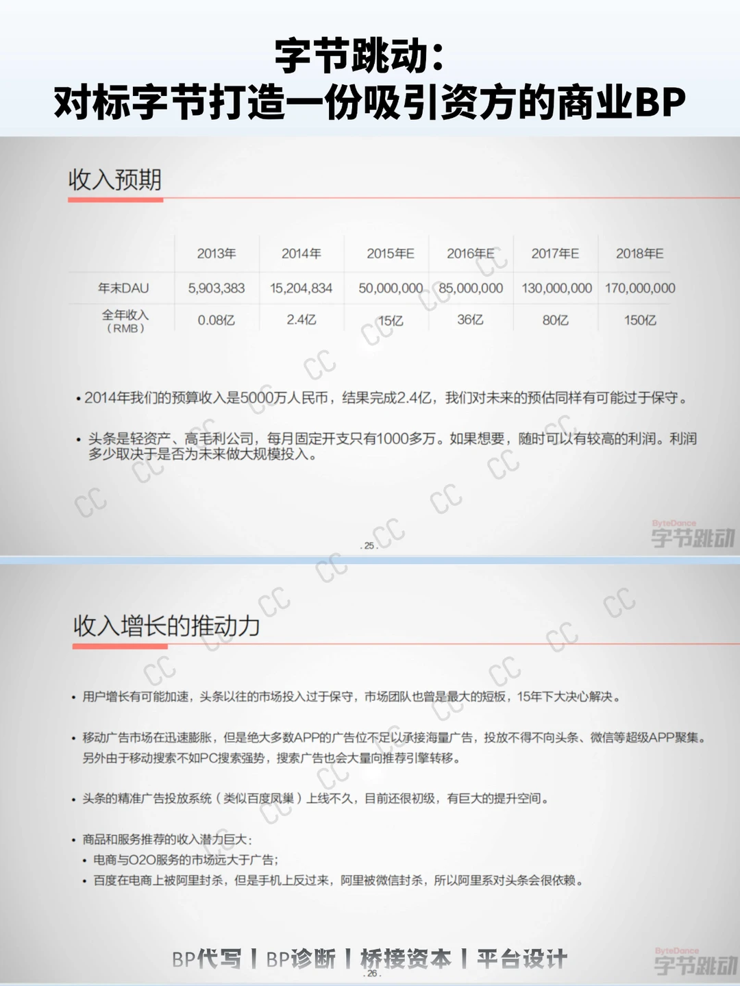 强调收入来源及增长模式,如广告效率、电商机会或服务拓展。