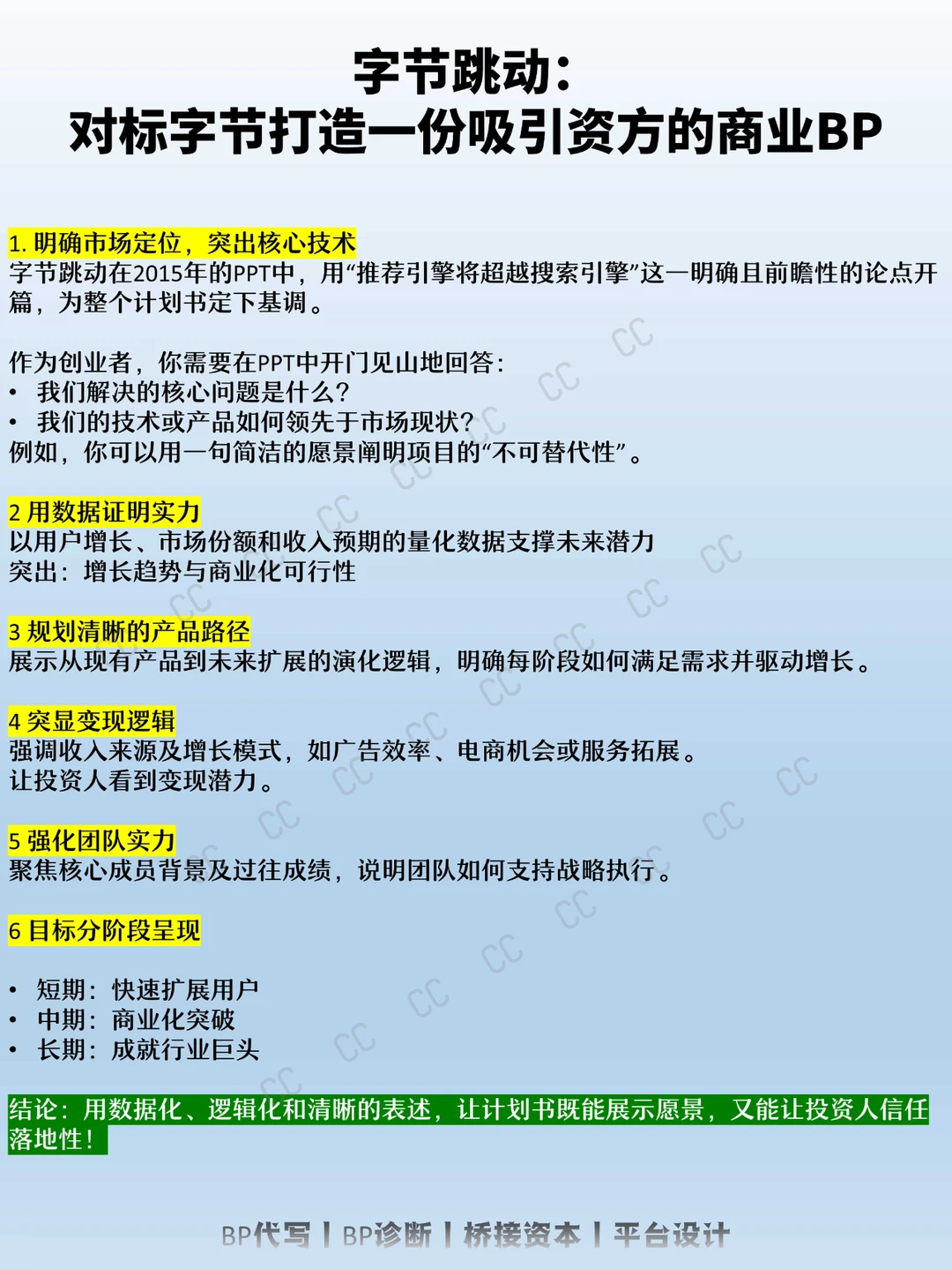 结论:用数据化、逻辑化和清晰的表述,让计划书既能展示愿景,又能让投资人信任落地性!