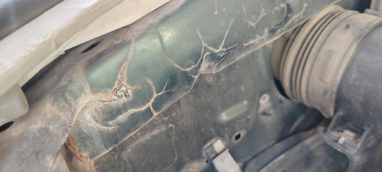 战损级普拉多,反正开不坏,就往死里开! 前两天验了一台08年的普拉多,跑了15万公里,车况很差劲,堪称战损级! 看看细节,水箱框架变形焊接,左前翼子板骨架变形焊接开裂,左前轮旋变形焊接,左B柱切割钣金,左C柱切割钣金,左后门框切割,左后翼子板切割更换,左D柱钣金,后备箱左侧导水槽切割焊接,行李箱门框切割; 右D柱钣金,右A柱钣金,右前轮旋变形焊接,右前翼子板骨架变形钣金; 内饰地毯生霉斑,主驾安全气囊更换,主副安全带更换,天窗玻璃更换; 机舱水箱散热器更换,发动机积碳,气门室盖渗漏,油底壳渗漏,转向机漏油,转向球头开裂破损。 总结就是重大事故车,全身伤痕累累,包括骨架结构,就这还卖10万,车贩子够黑! 也不知道这车到底经历了什么?遇到一个喜欢霍霍车的,不爱惜车的车主,也是真的命苦!
