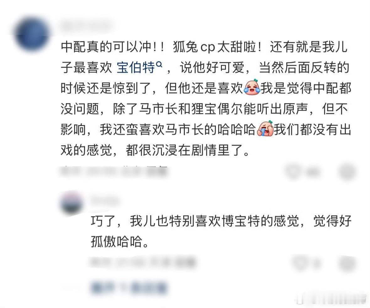 疯狂动物城2中配反馈有网友说中配版也没有网上说的不堪,整体贴合角色性格,没有违和感~唯一听出的熟面孔是费翔,辨识度超高,低沉嗓音和角色气质适配度拉满了~