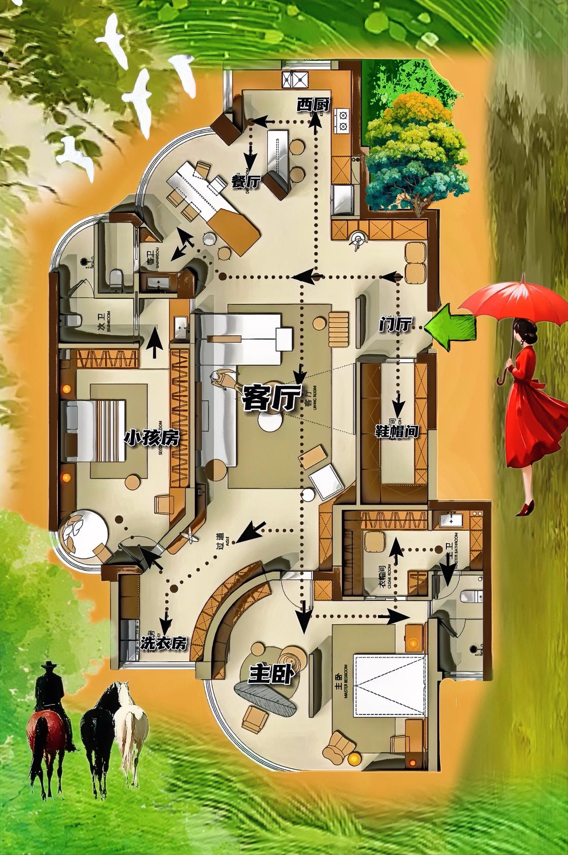 智慧的布局,性感的动线,138㎡帅气二居室,就是格局不正经,果然是大修大改后的精品房! 只要门厅敢想,玄关敢改,厨房敢开,勇敢向前一小步,接纳下三口之家的机缘! 如果能定档现代版户型,客厅32㎡很规矩,却是第二条过道!主卧是哪个爱出风头的,用半边阳台,隔出溢满香气的书房。剩余半截阳台做家政间! 第二过道,第三个作用还是过道,直达小孩房! 所以𠄘认第二过道是私密的! 第一过道,在餐厨合体后,动线很油滑,完全就是一条烟火味儿十足的生活动线,拐角是厕所! 凭这种布局方式,动线一定有所成就! 小房子布局暗示了很多次,承重墙不多就是有灵根的房子,腰包厚实的话,完全把小两居,打造成品质一流的精装房!