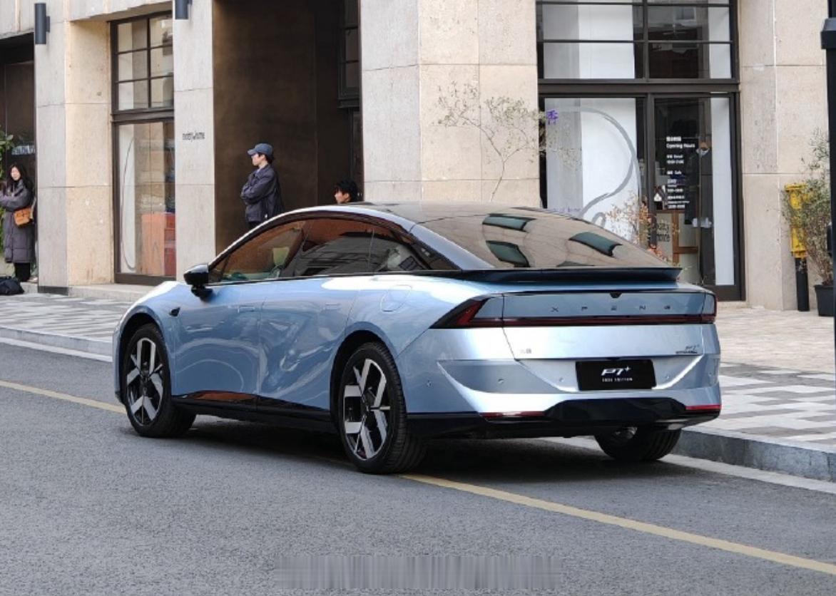 全新小鹏P7+的增程版实车图被曝光新车的尾灯看起来更加的精致线条看起来有种林肯MKZ的感觉