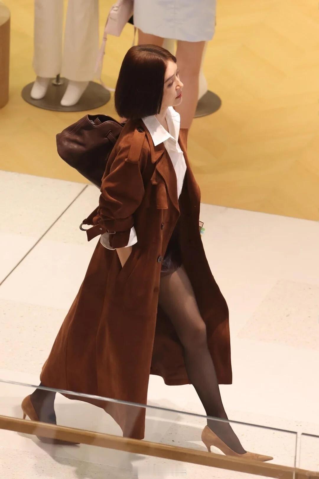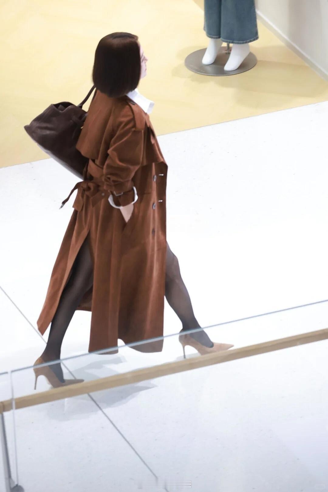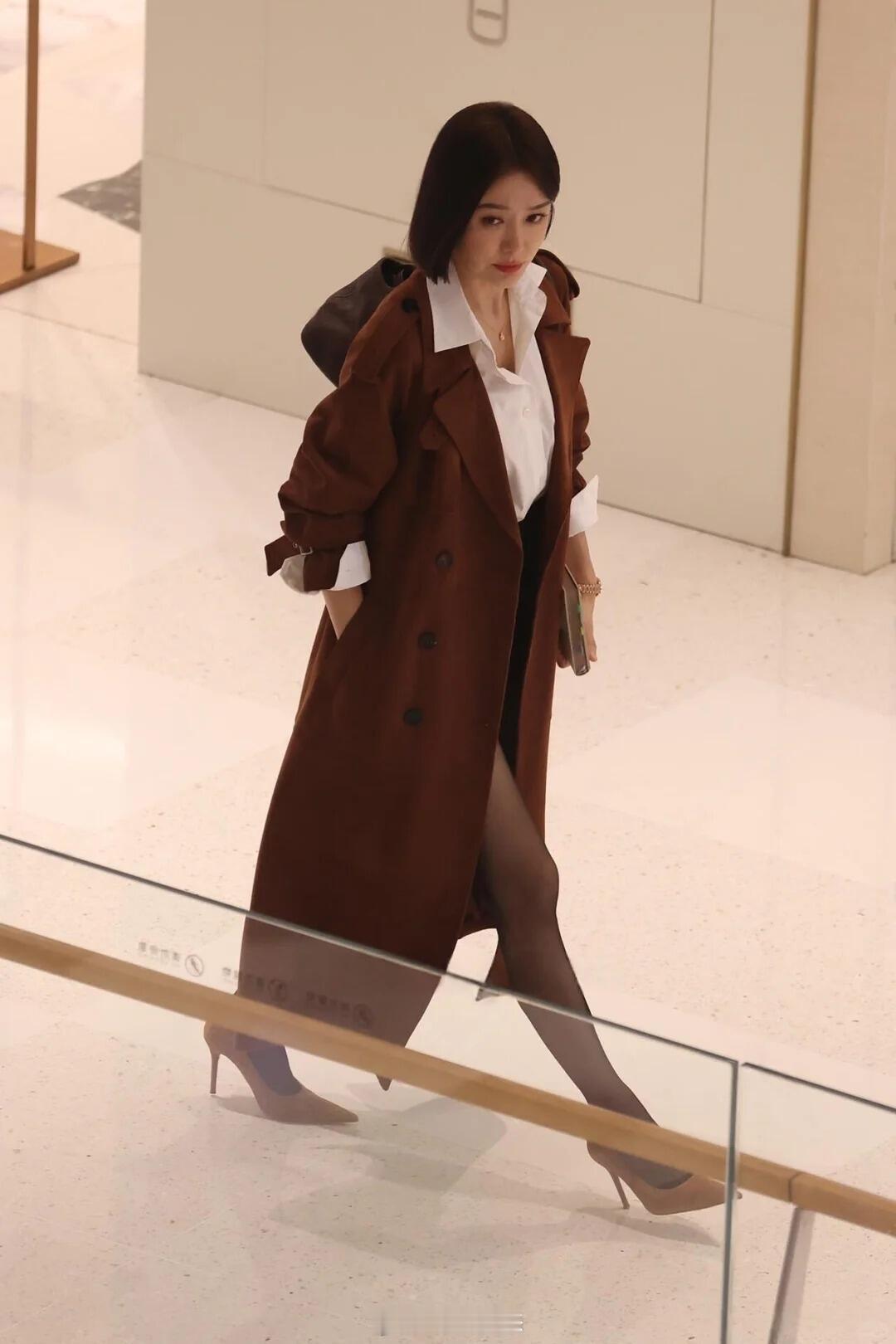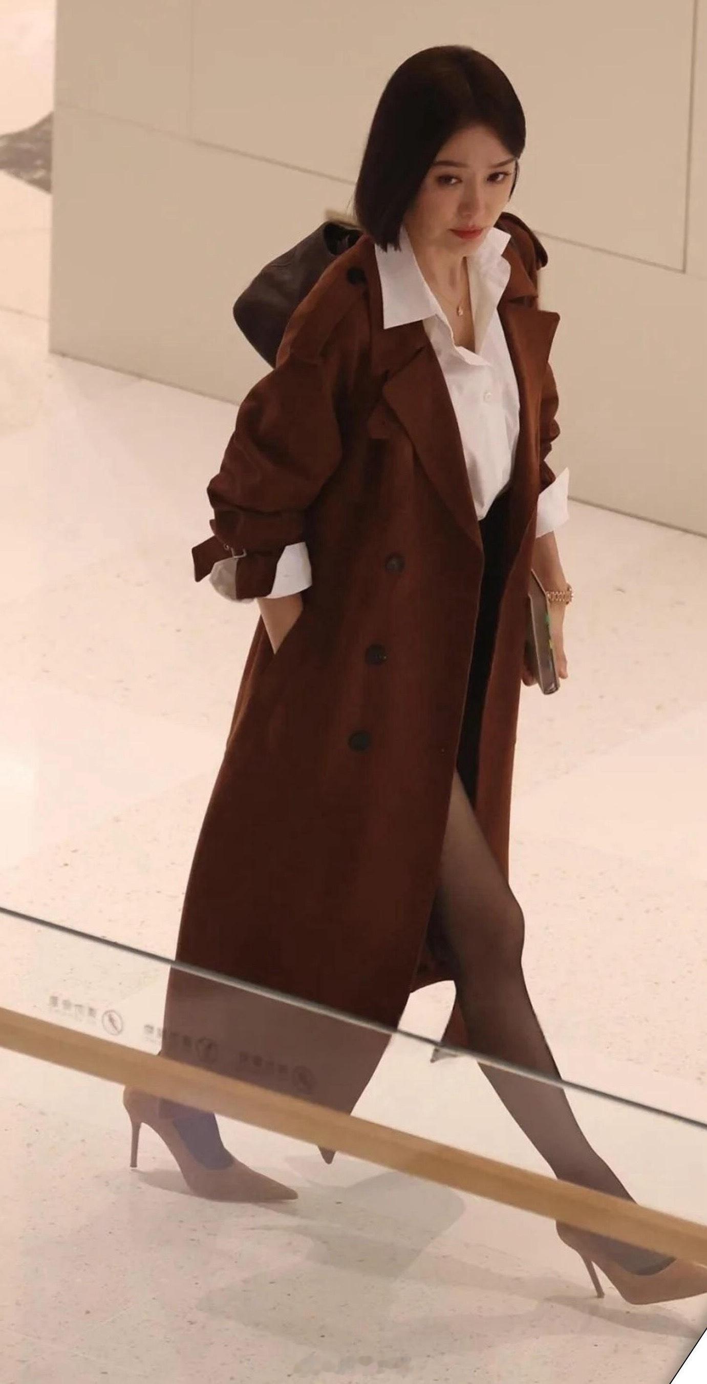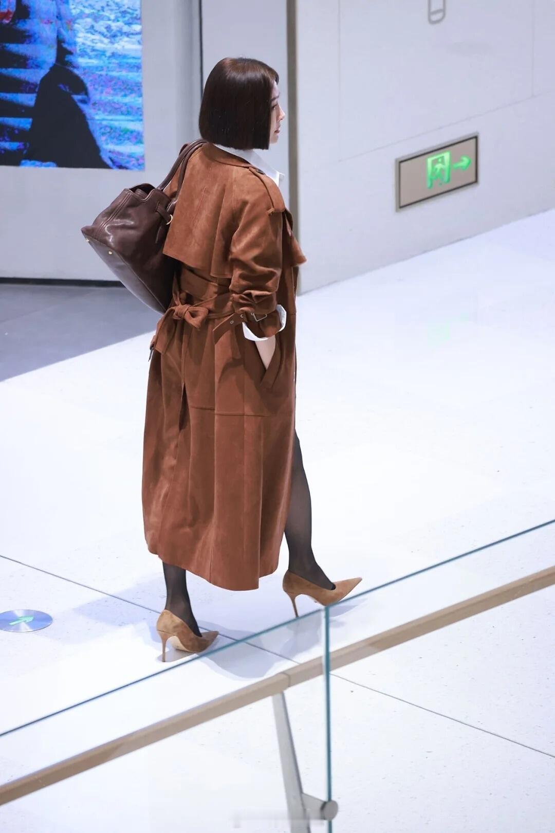 秦岚焦糖棕长风衣+白衬衫+黑裙=职场松弛感天花板!