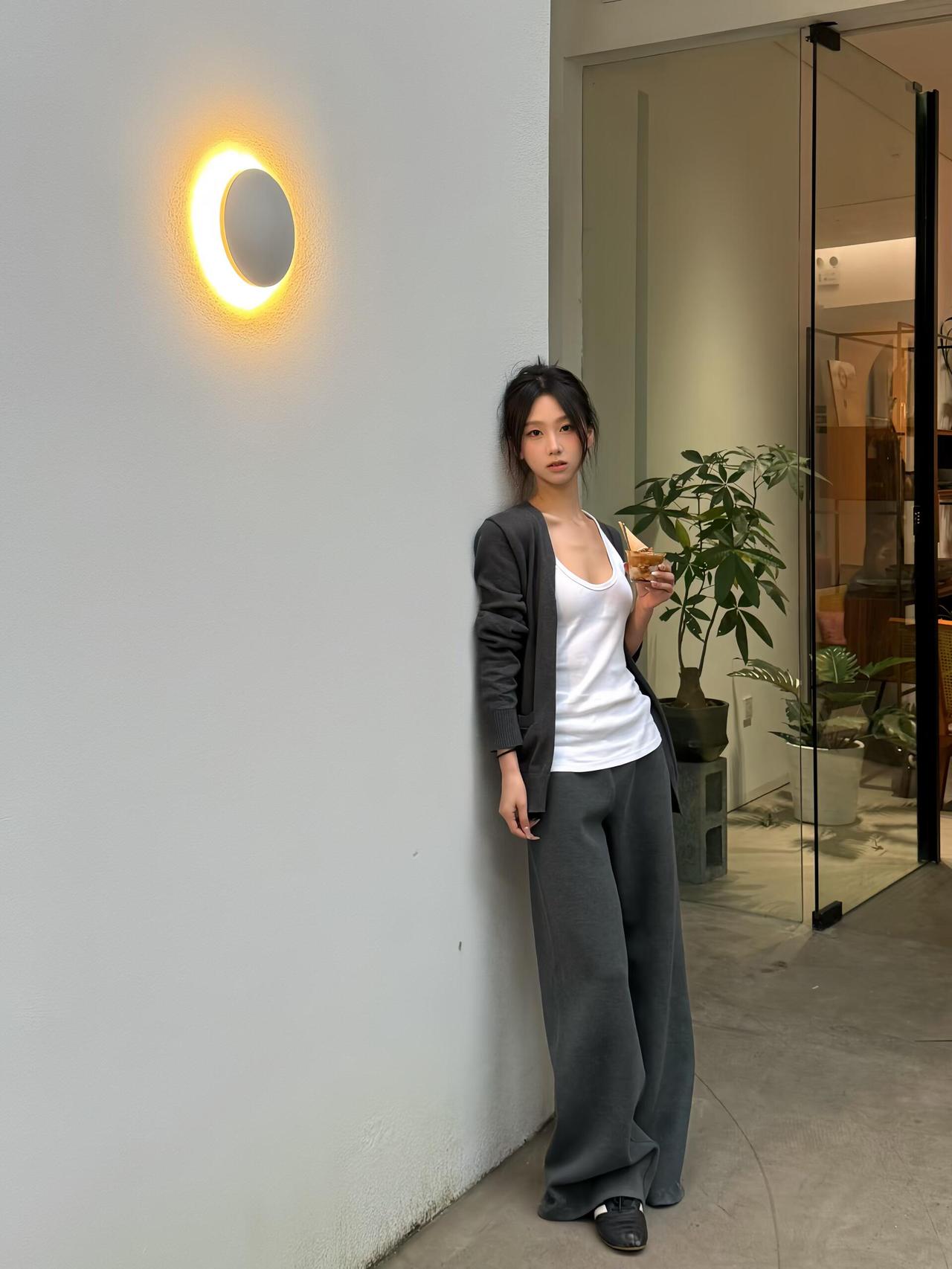 日系少女穿搭|浅灰开衫+深蓝百褶裙,秋冬氛围感这不就来了!