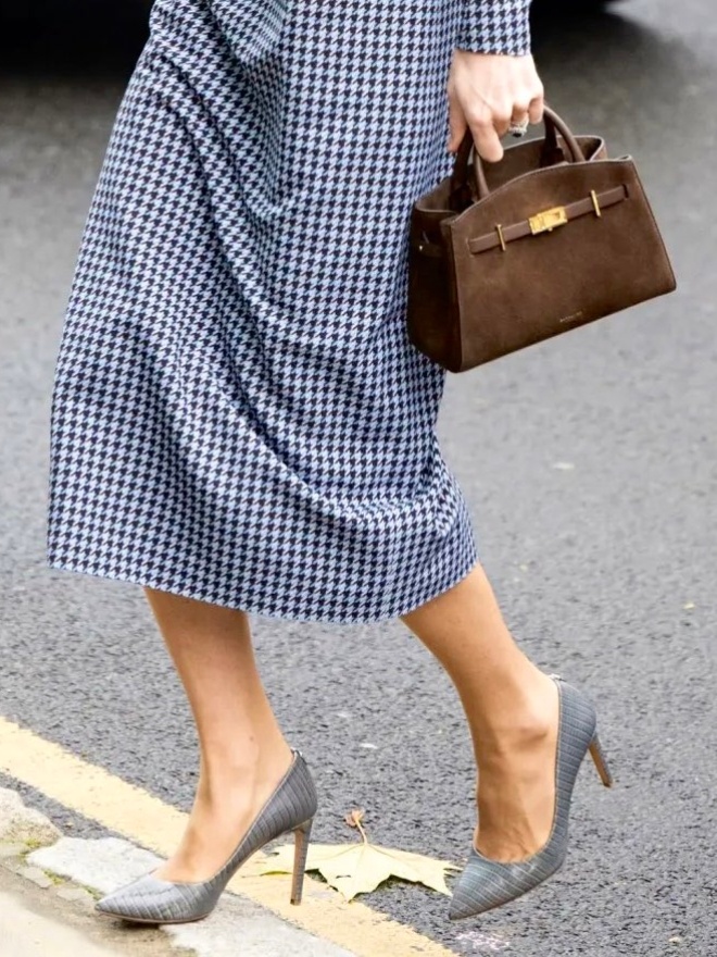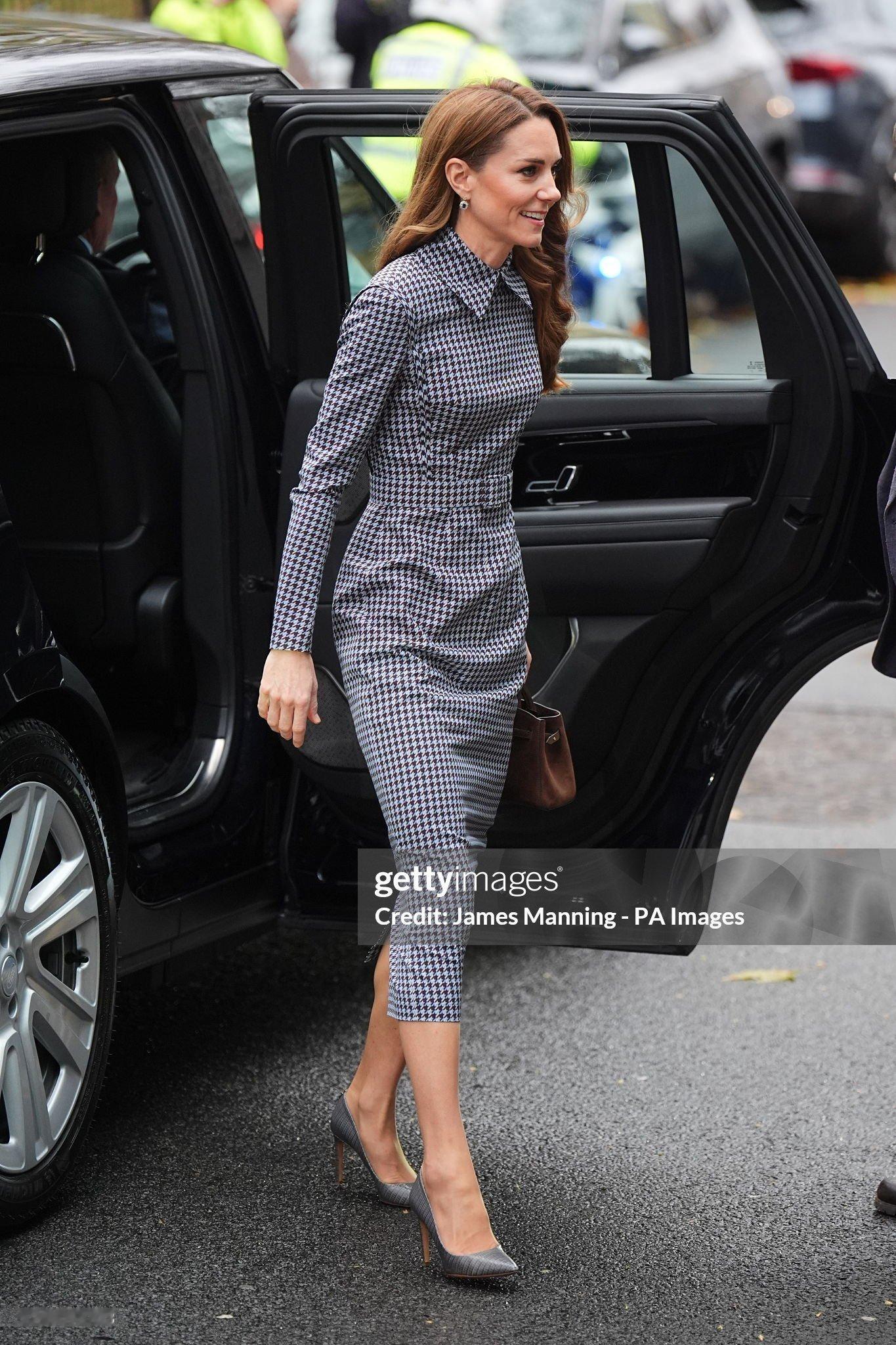 11月27日,以皇家赞助人的身份访问安娜·弗洛伊德中心,这次来主要是为探讨「关系与联系」在塑造婴儿、儿童和年轻人的未来生活中的关键作用~重穿了22年访问哈佛大学儿童发展中心时穿过的EW连衣裙,第一次穿着效果给我的印象就是“好一个细长直”,这次快瘦成一片的Katie更是~鞋履搭配了双同色系的Hugo Boss,是她早年入的单品,今年(截至目前)穿了三次了(图六)……耳饰是搭配的戴妃的蓝宝石耳环。全身唯一新品就是手提的DeMellier摩卡棕绒面革手袋,这一品牌她之前入手过两个单品(图五),很久之前汇总过,英王室的几位以及皮帕都hin爱~katemiddleton英国王室凯特王妃王室时尚