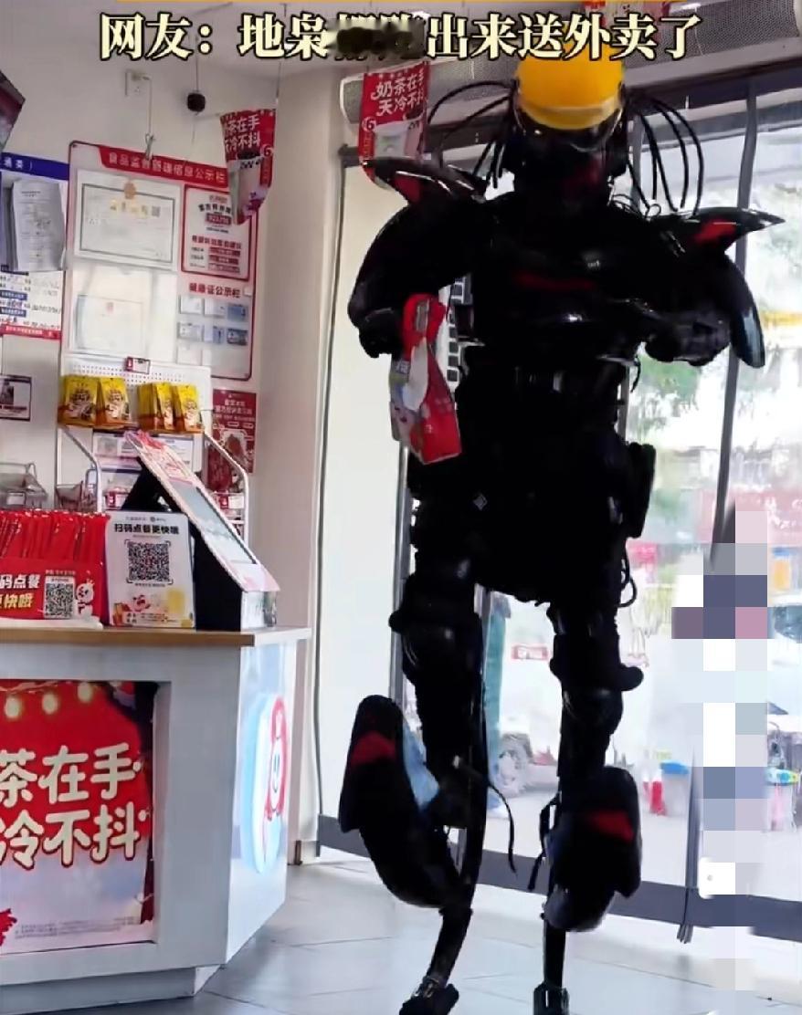 外卖界这么卷了吗? 居然穿机甲上阵, 这个“地枭”是浪漫还是博眼球呢。 刚刷视频看到福建一老哥穿机甲送外卖,裹着黑红机械甲胄、顶着黄色头盔,连放奶茶都自带“摇匀特效”。 网友直接笑疯:这哪是外卖员,分明是地枭从地下城跑出来搞副业,一眨眼功夫跑没影了。 其实在生活中,能把枯燥的跑腿活干成了二次元现场,也算是自娱自乐了吧。也许这就是他一天的快乐源泉呢? 这么一看,好像工作也不那么苦哈哈了,连等餐都像在攒能量条,你要是打工倦了,会整啥活给生活加buff?外卖 工作 自娱自乐