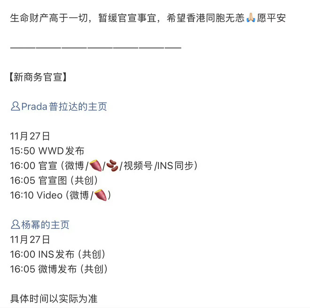 田曦薇《嫁金钗》延迟官宣杨幂Prada暂缓官宣檀健次的新歌也暂缓发布了 愿平安嫁